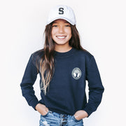 - Unisex fit organic cotton blend printed crewneck sweatshirt (Style runs small, recommended to size up)