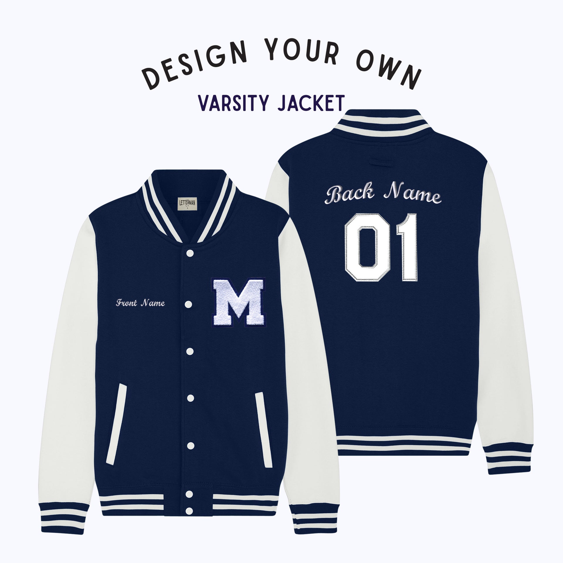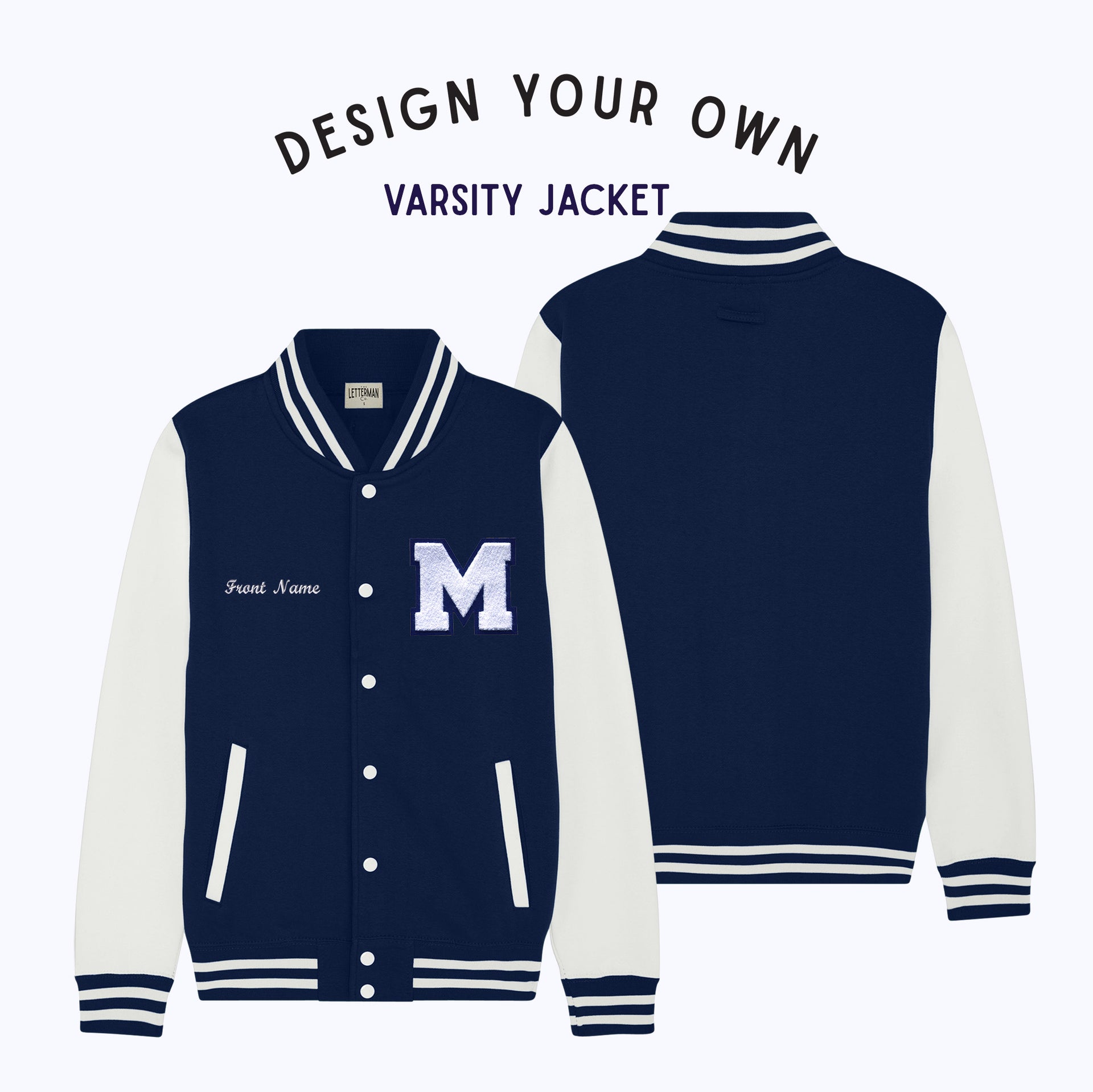 Sweatshirt Varsity Jacket with Varsity Letter Patch. Option to add embroidered name(s) & appliqué number*