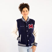 Personalized Adult Sweatshirt Varsity Jacket NAVY/WHITE