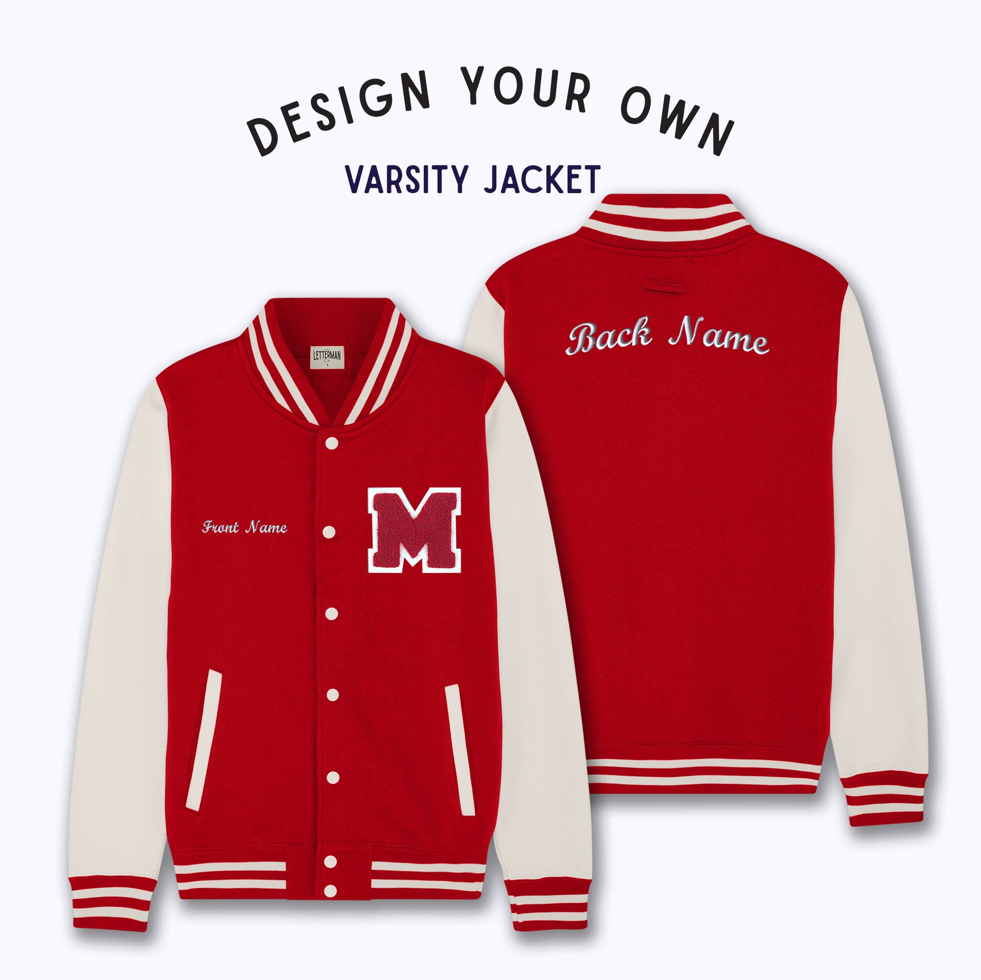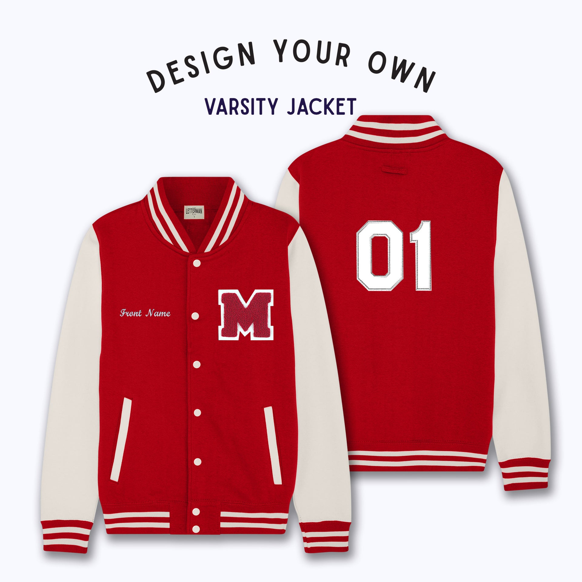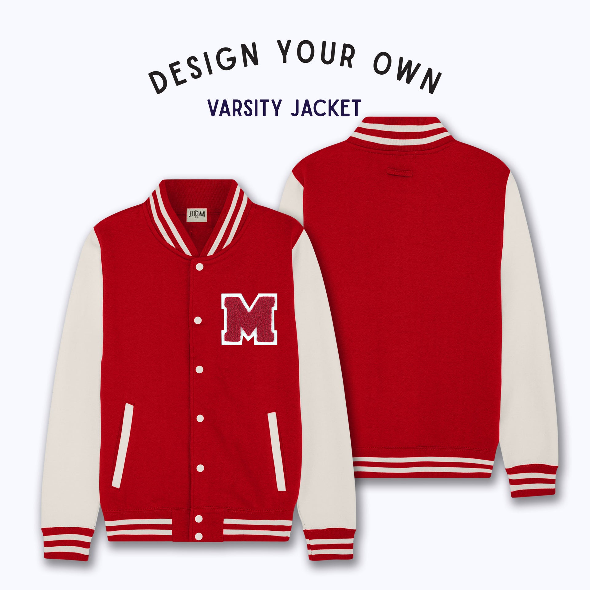 Sweatshirt Varsity Jacket with Varsity Letter Patch. Option to add embroidered name(s) & appliqué number*