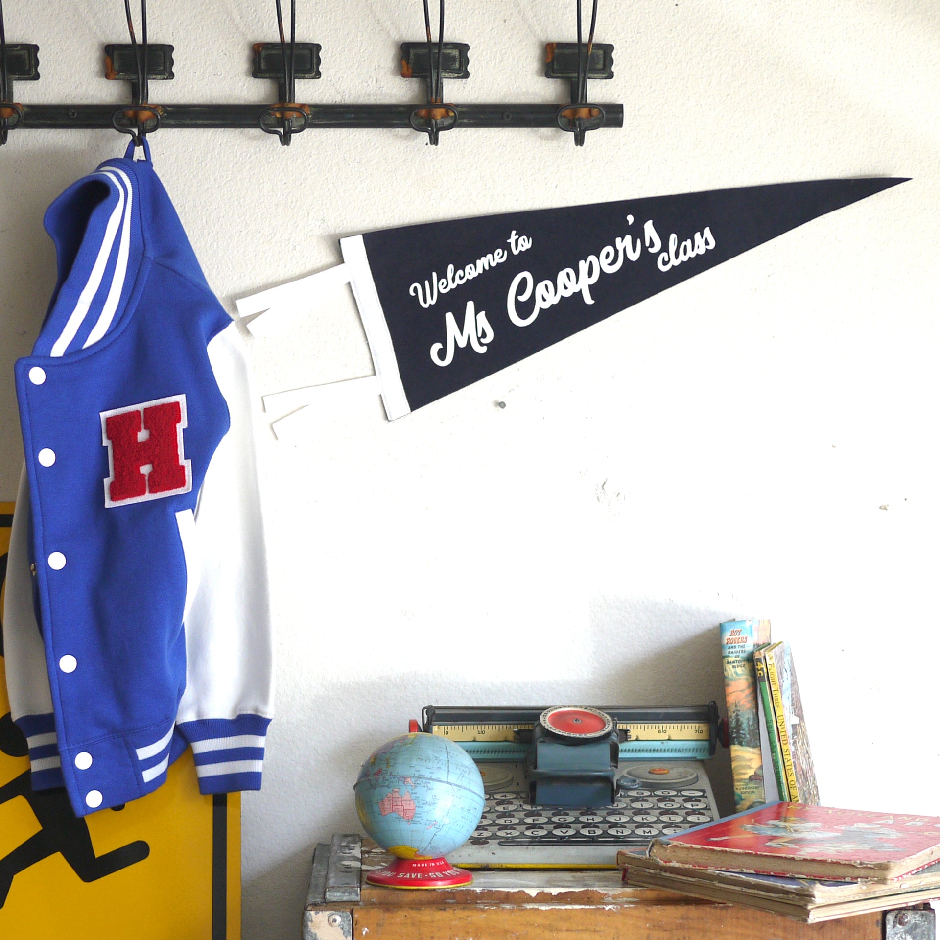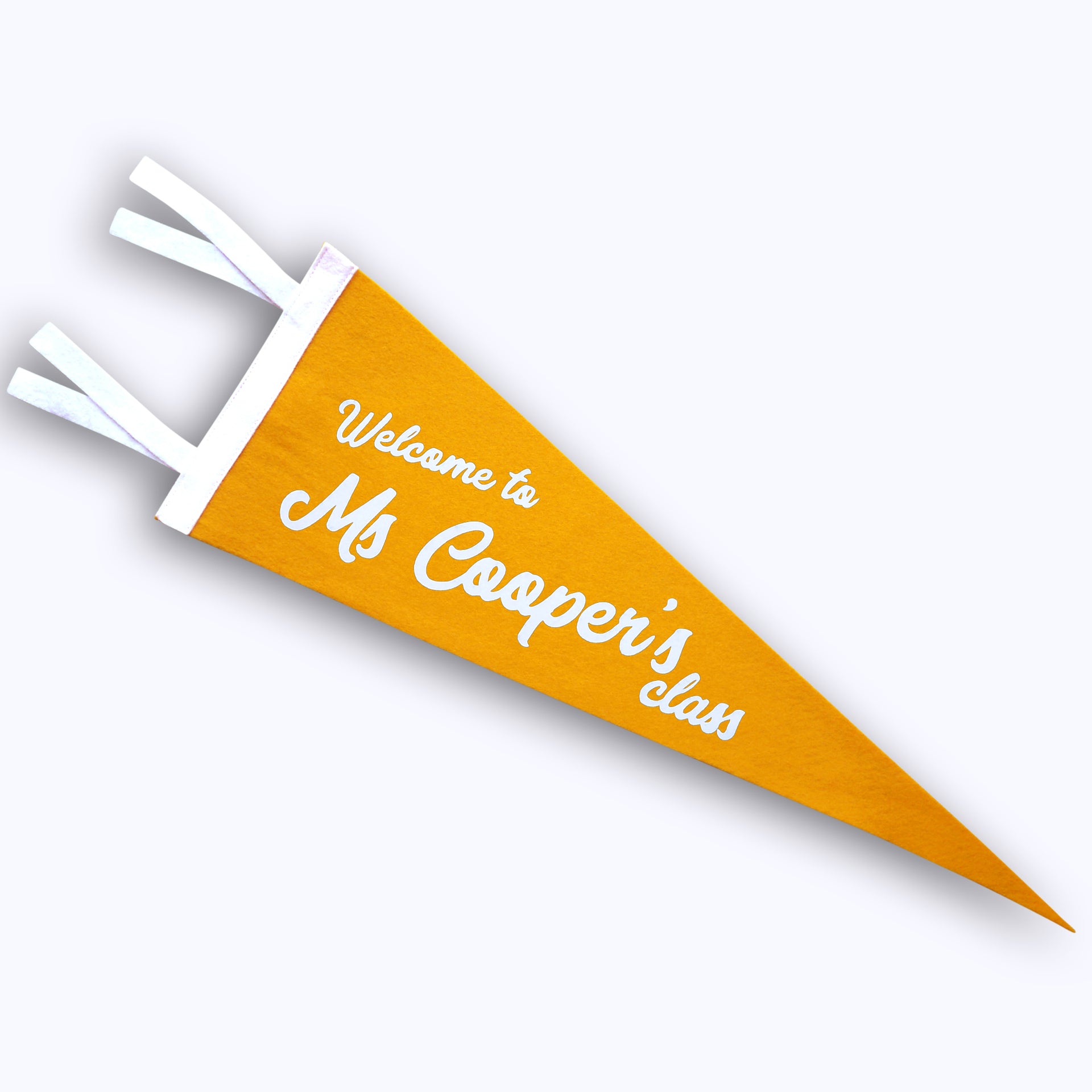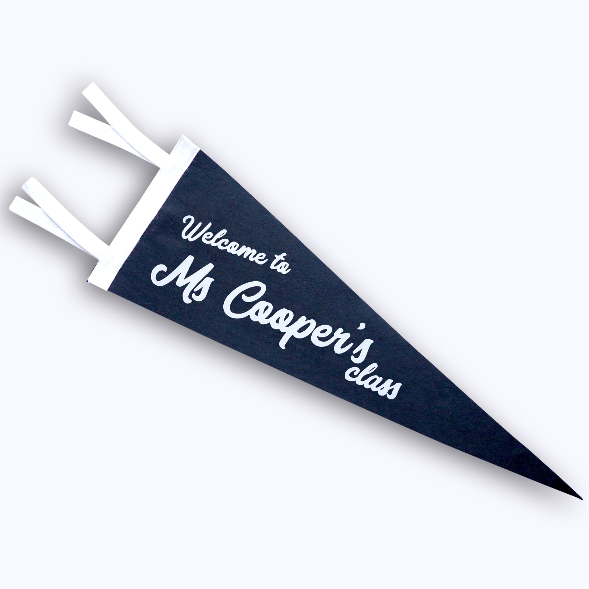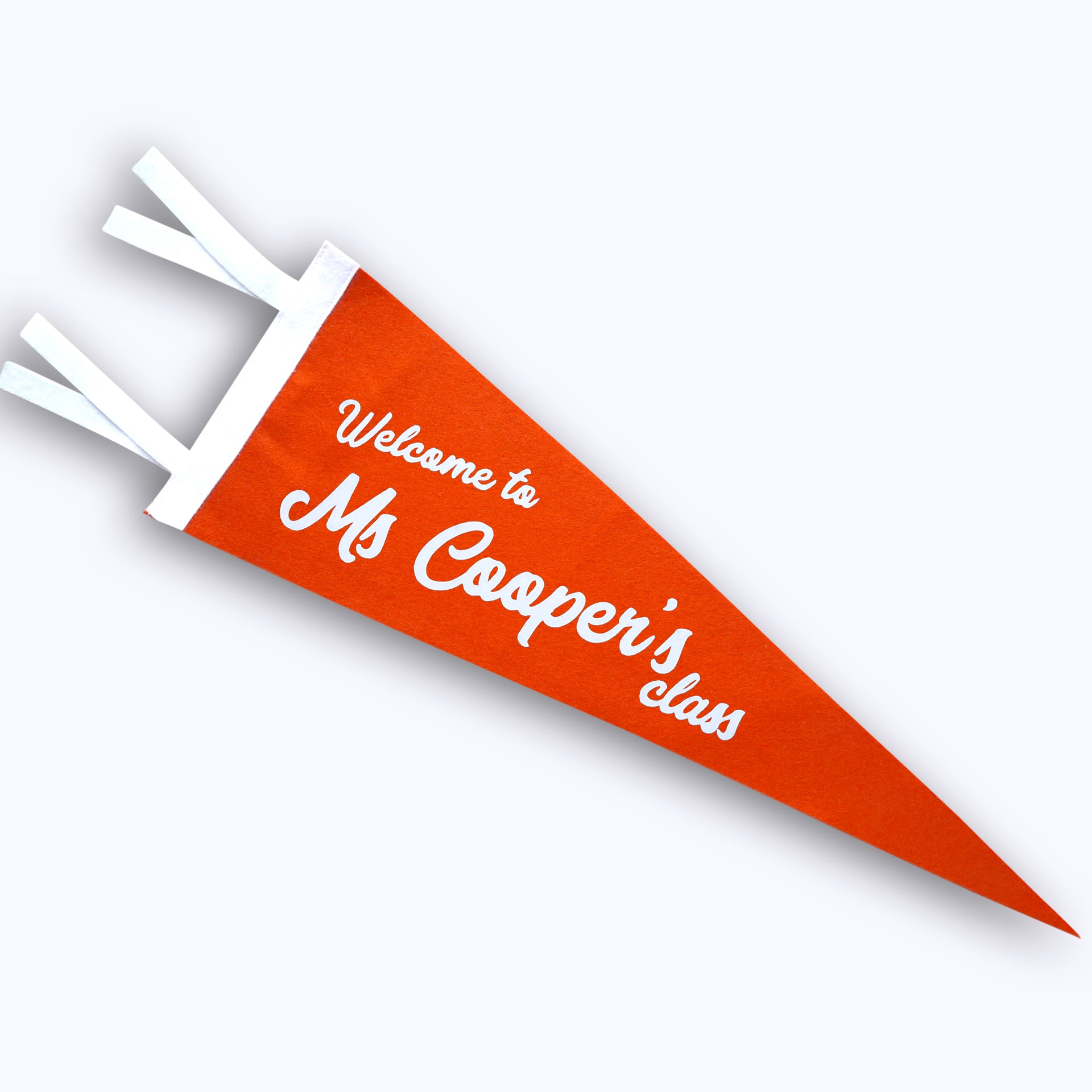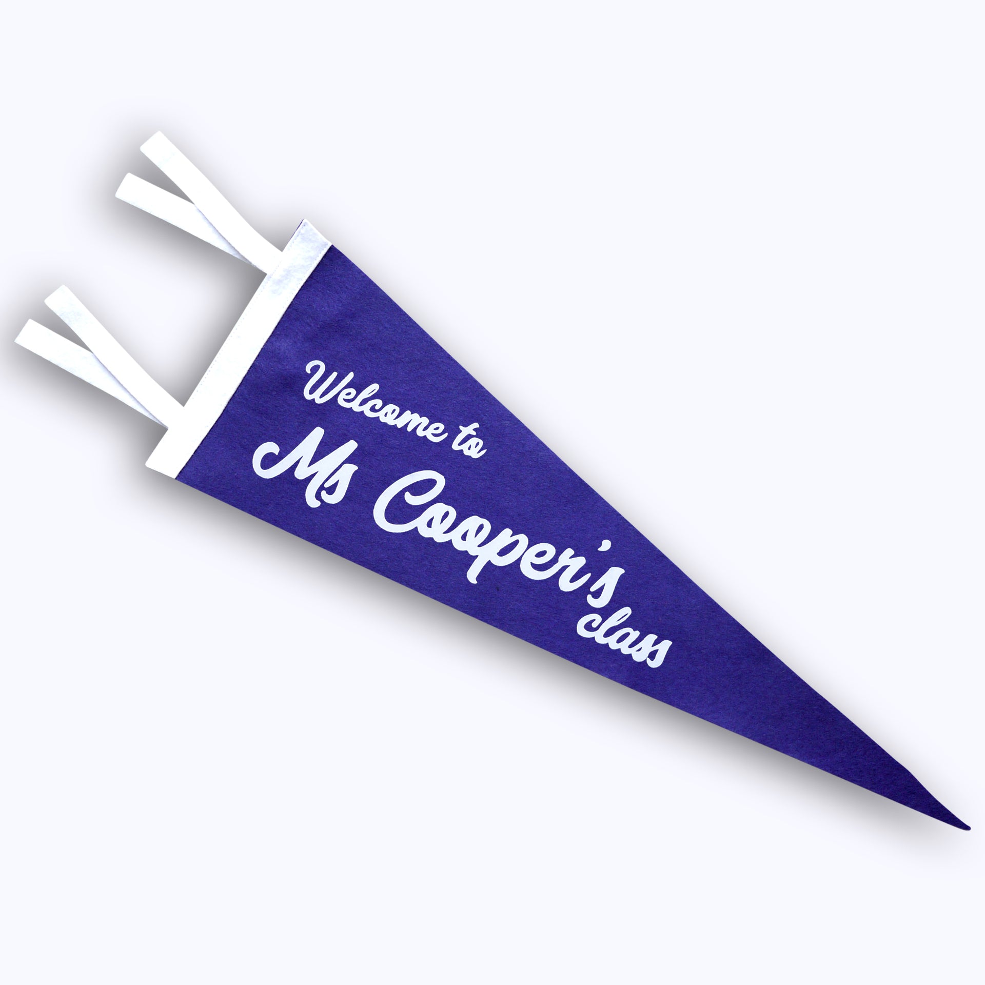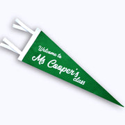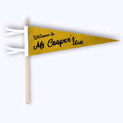 Handmade Felt Pennant with Soft Flocked 'Personalized Welcome Teacher Name' print.
