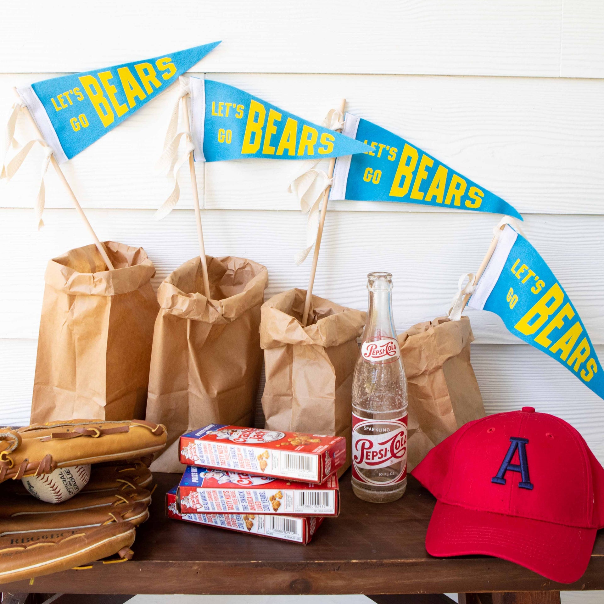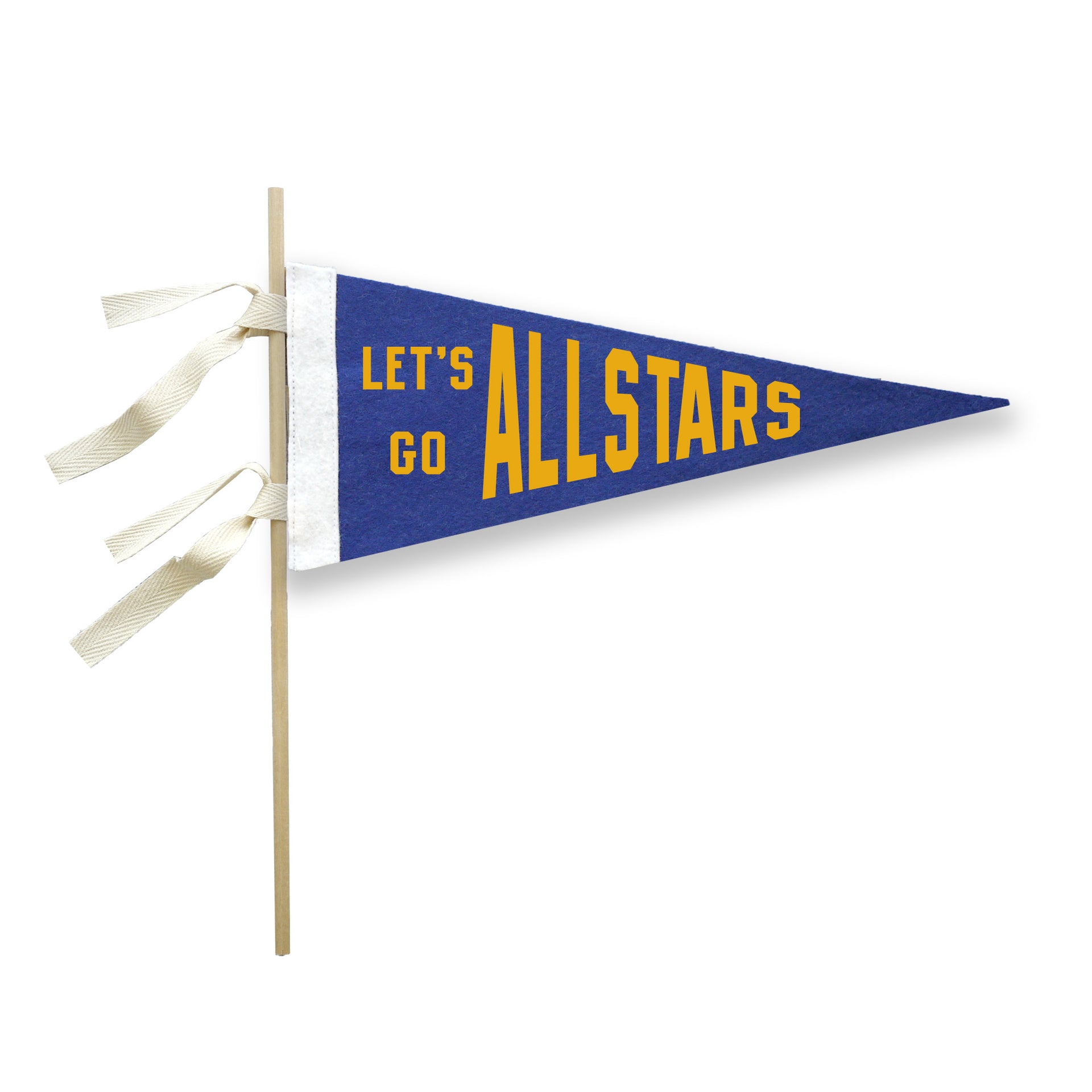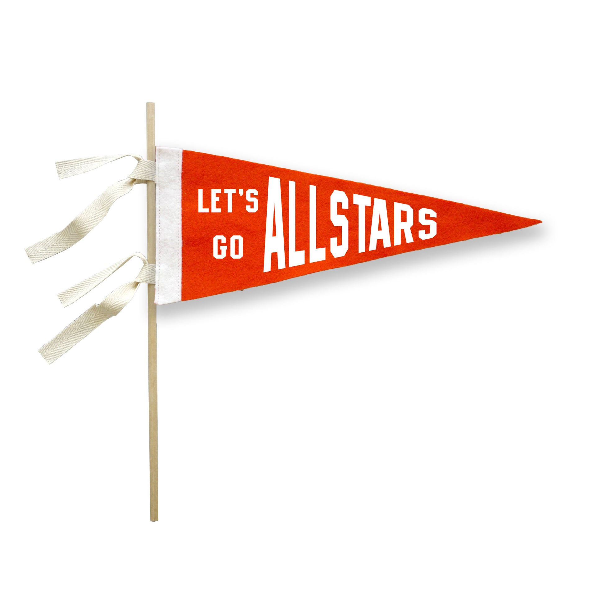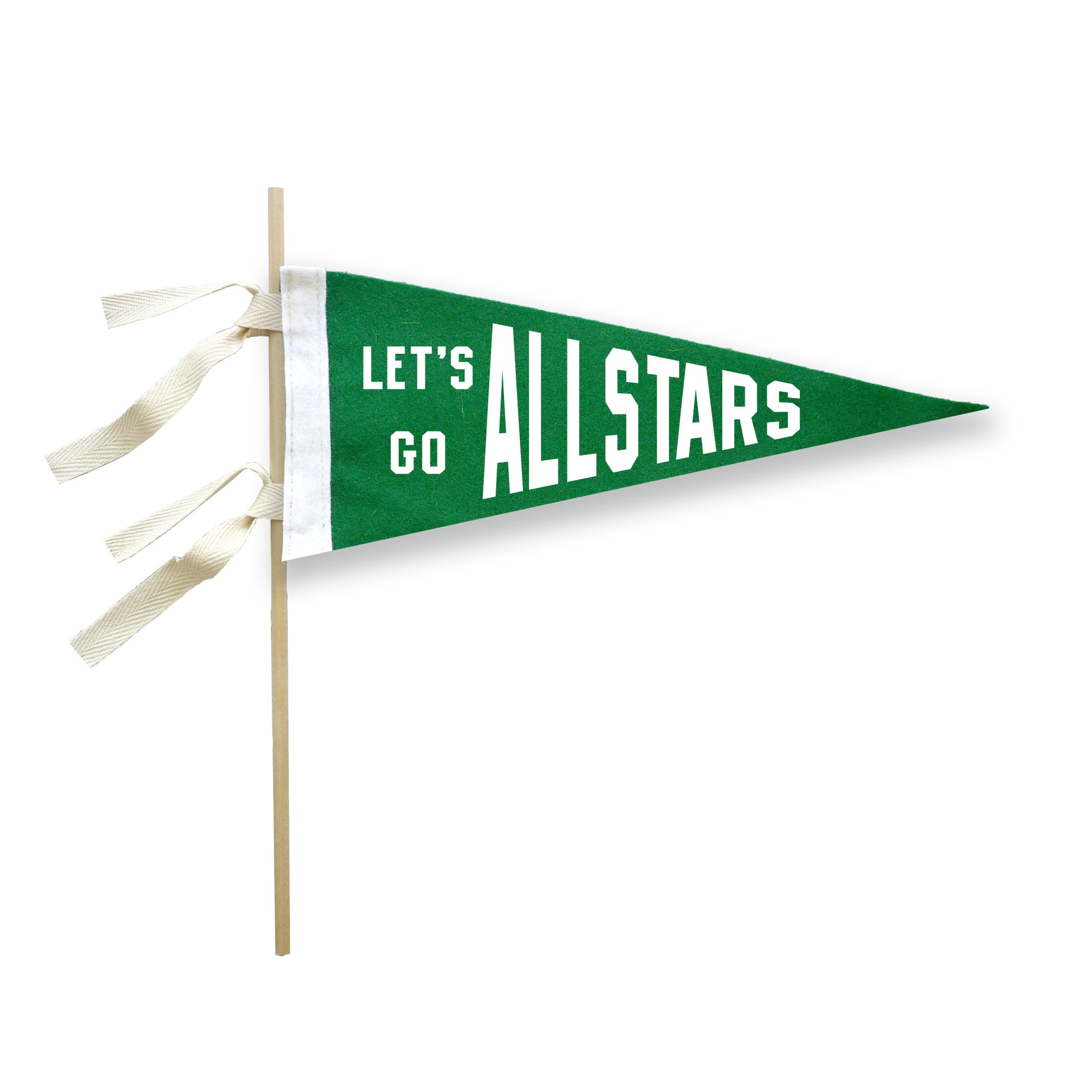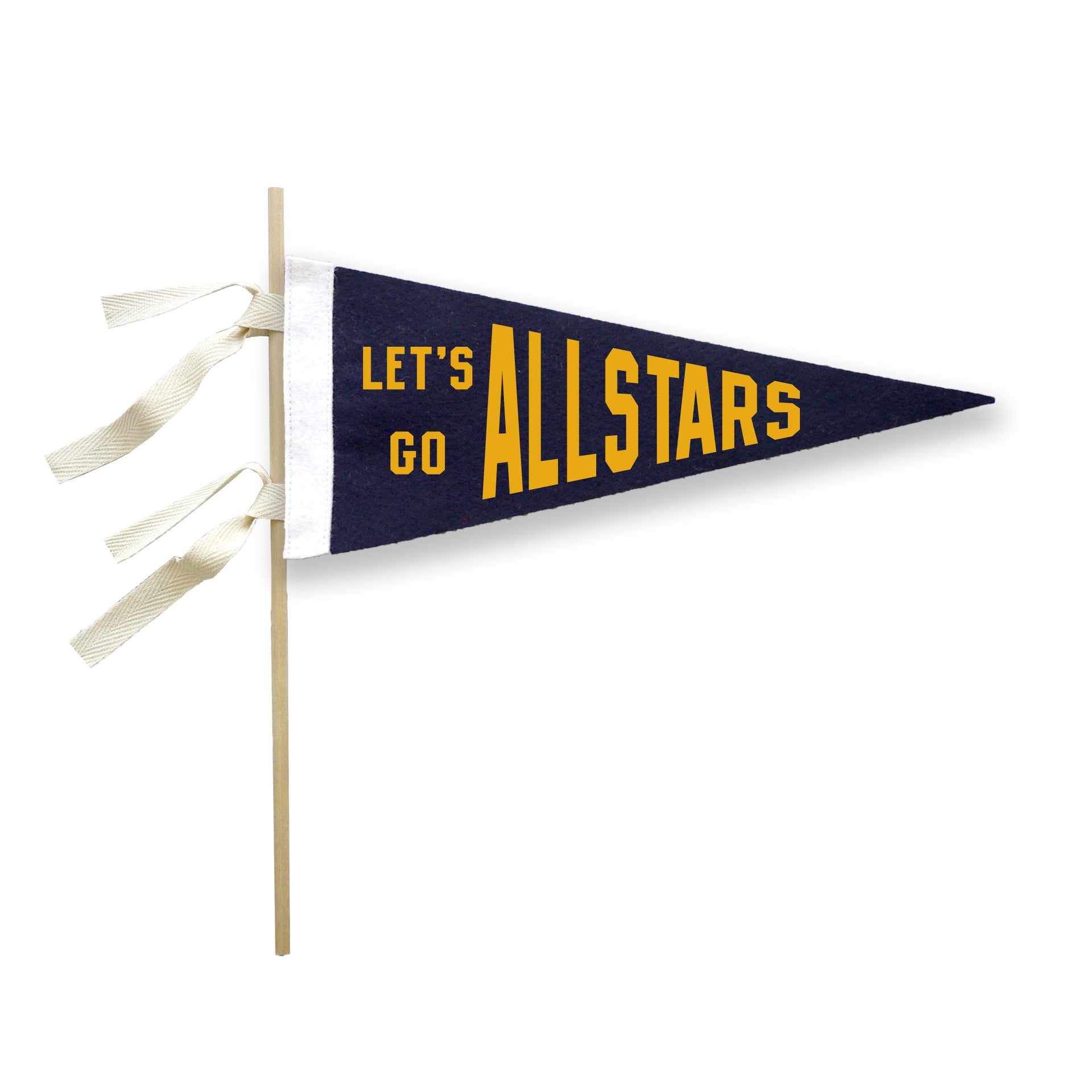 Handmade Felt Pennants with Soft Flocked 'Let's Go' TEAM NAME prints.