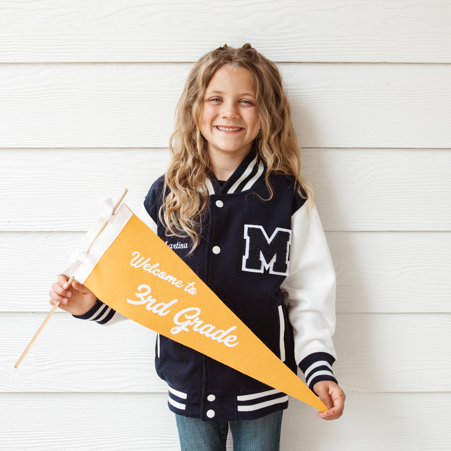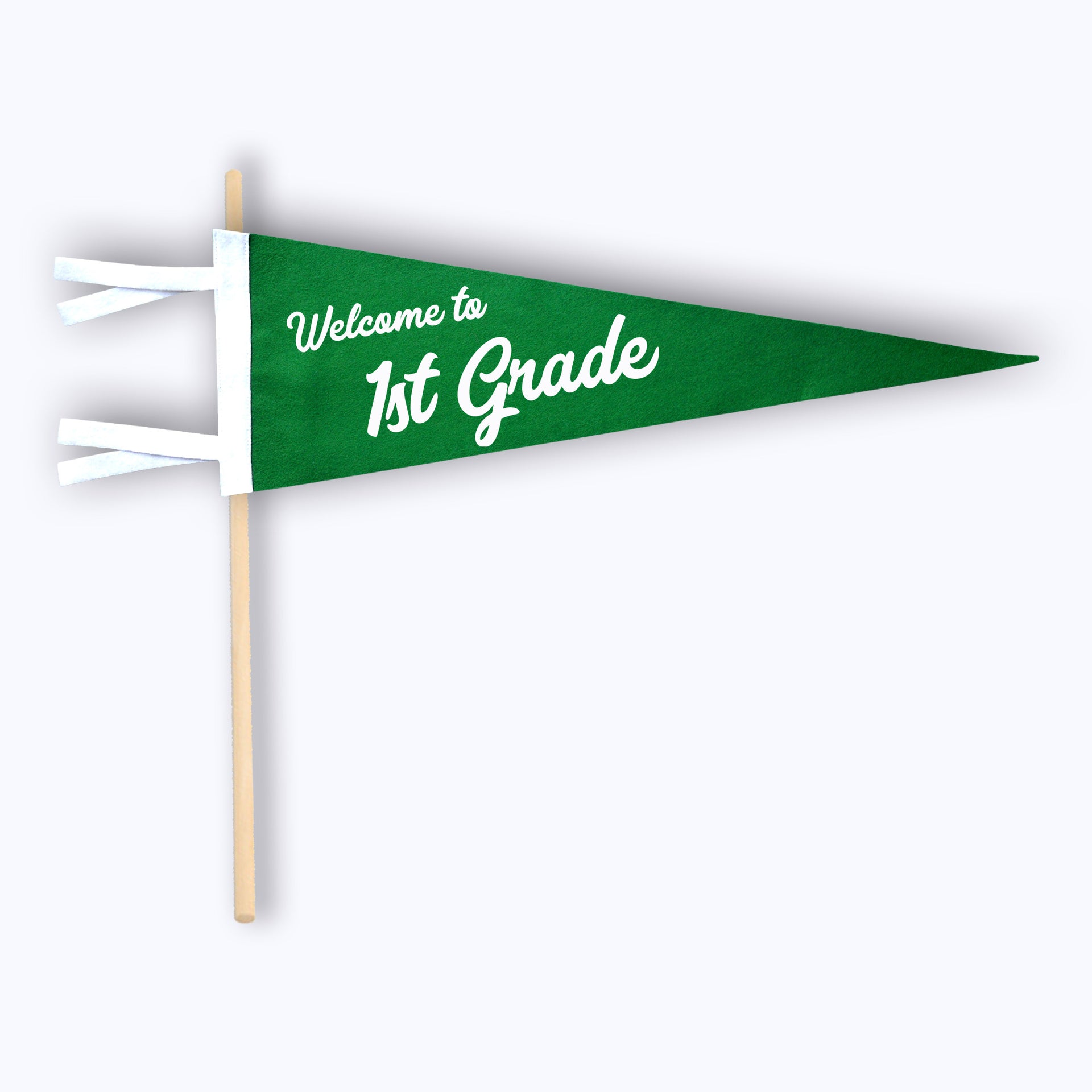 - Handmade Felt Pennant with Soft Flocked 'Welcome to Grade' print