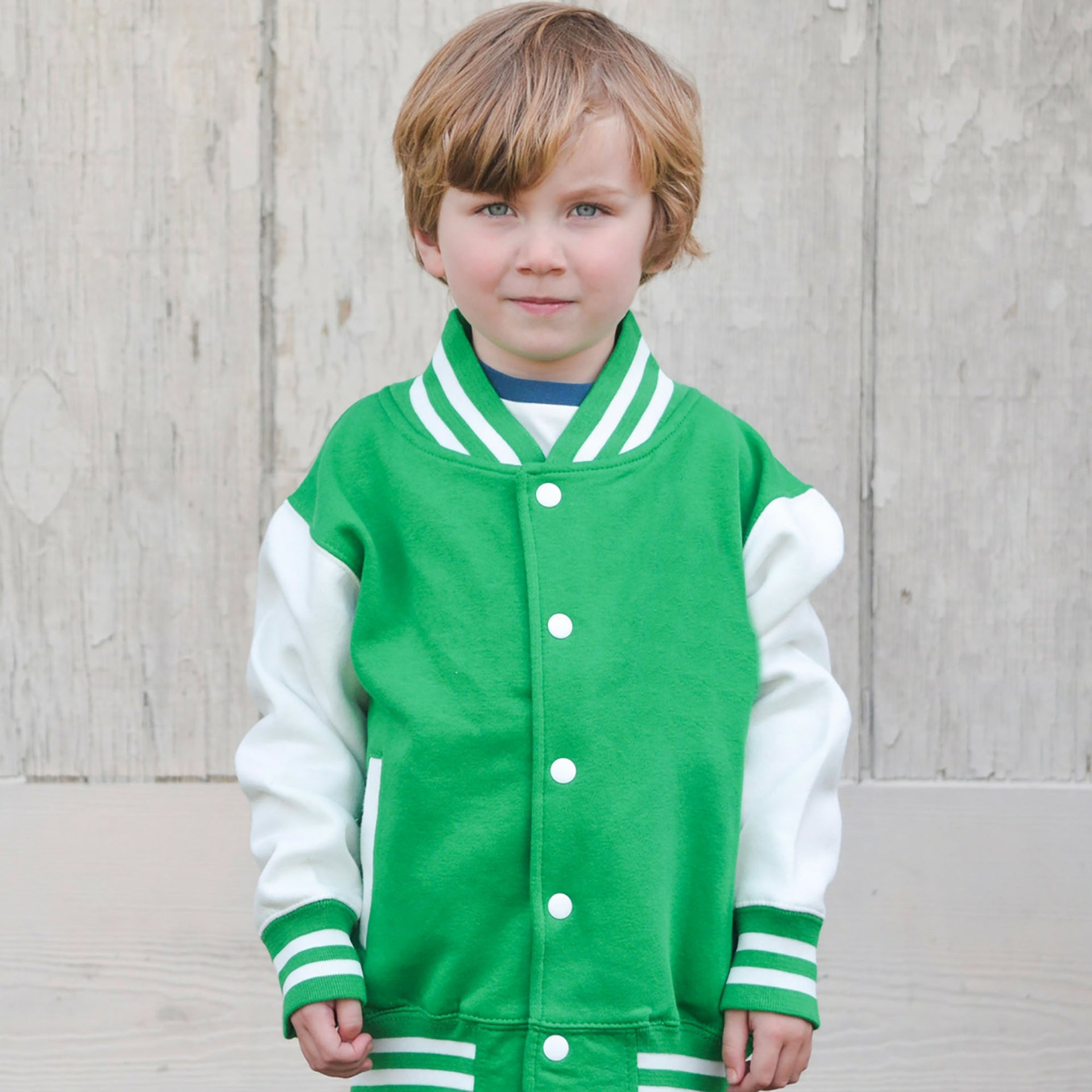 Kids Sweatshirt Varsity Jacket GREEN/WHITE