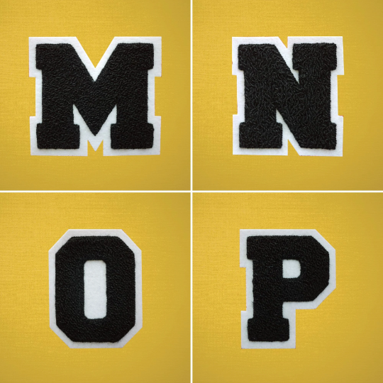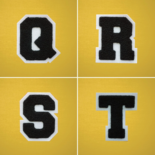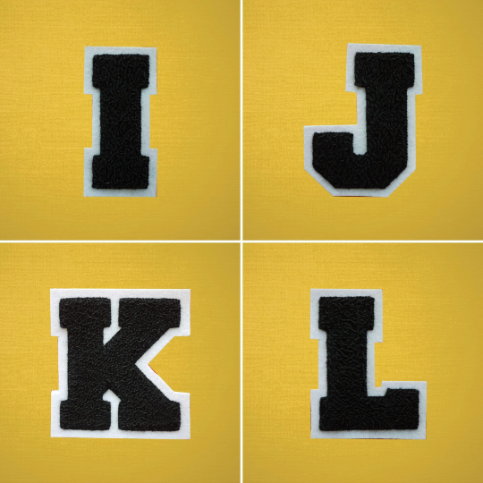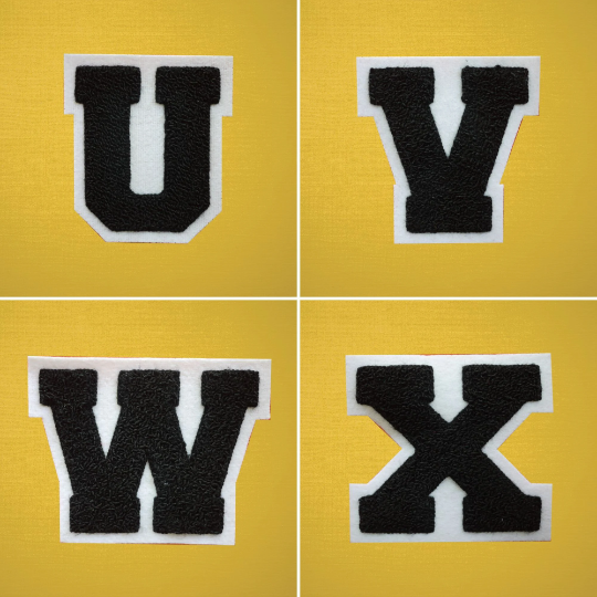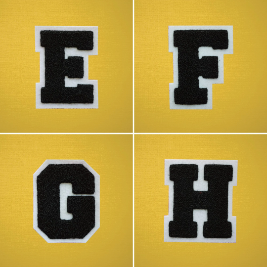 MEDIUM Varsity Letter Chenille Felt Patch 3.5" Black/ White