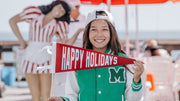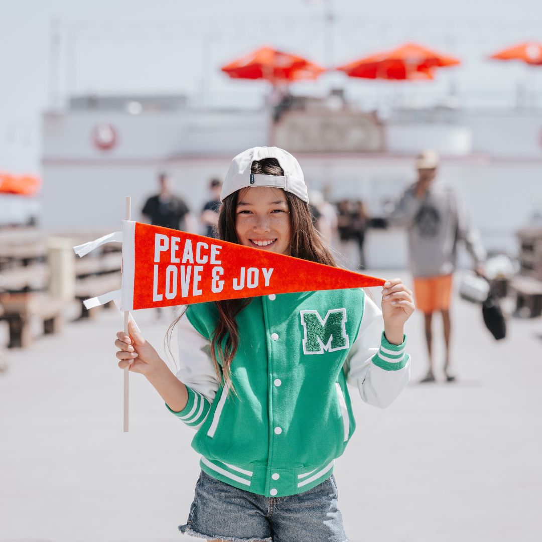 • Handmade wool blend felt pennant with soft flocked 'Holiday' print.