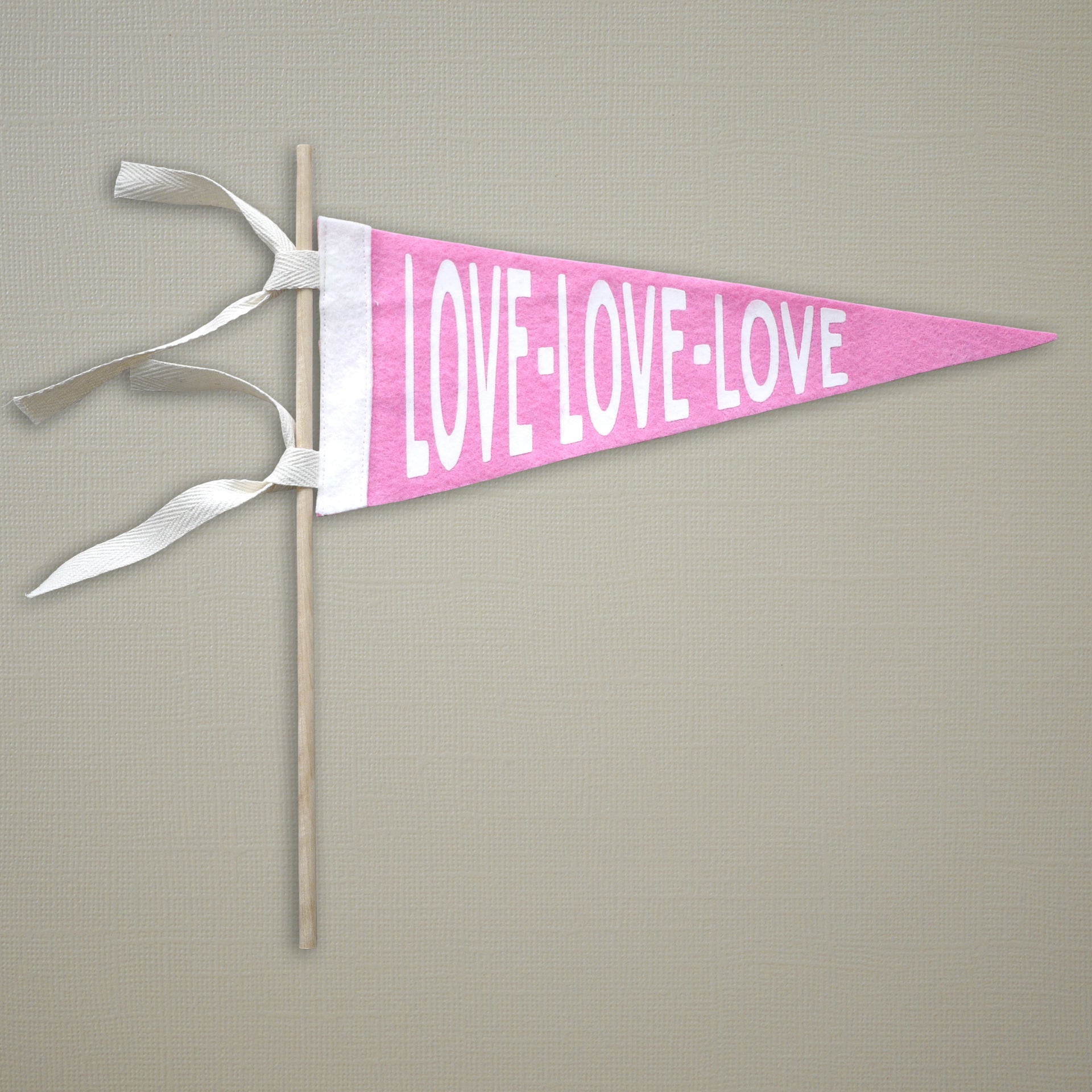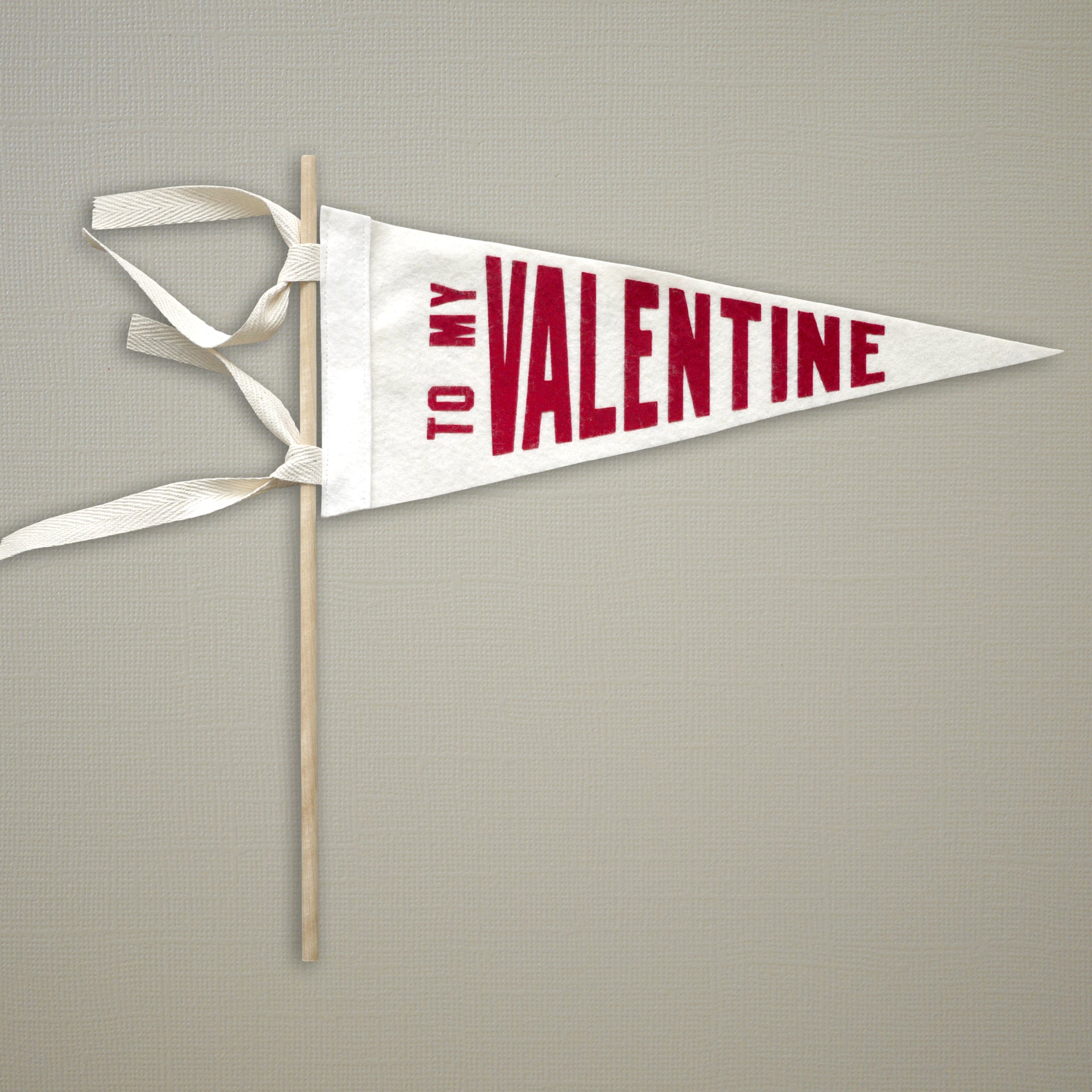 Handmade Felt Pennant with Soft Flocked 'Valentine' print.
