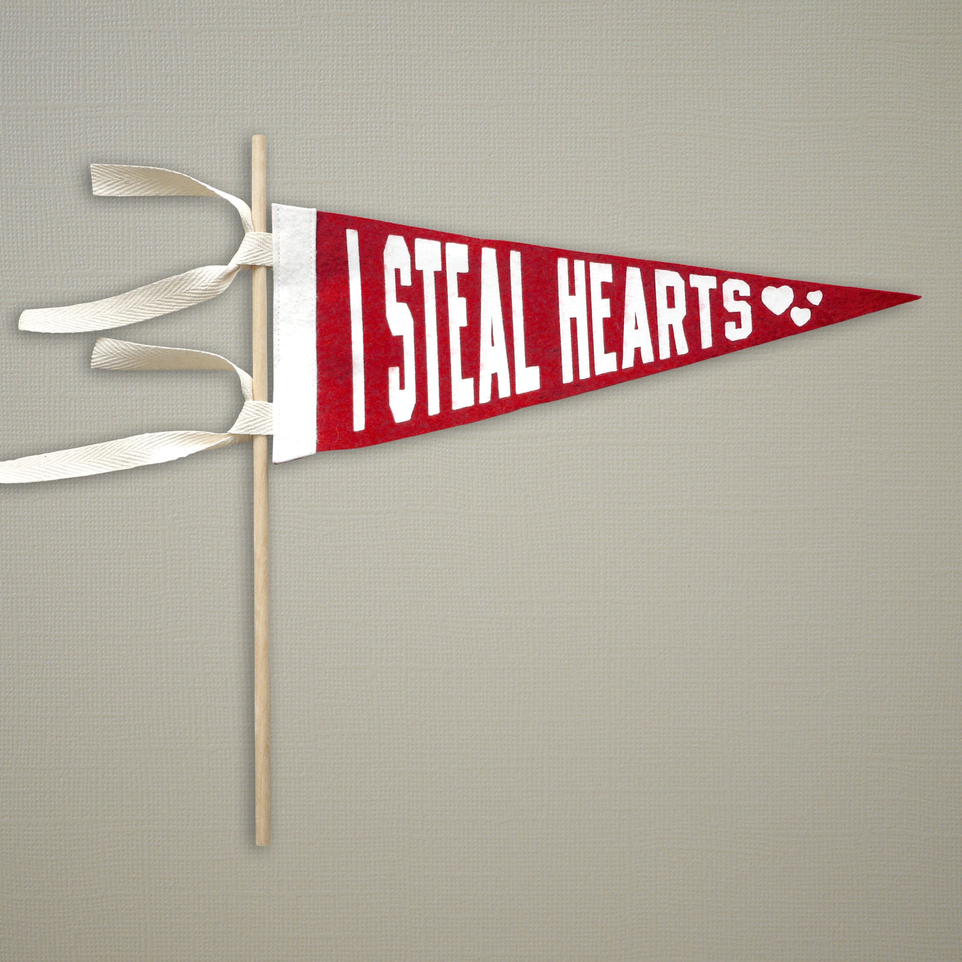 Pennant can be tied to stick and used in a seasonal display, in a wreath, a unique addition to a Valentine gift bag or bouquet of flowers.