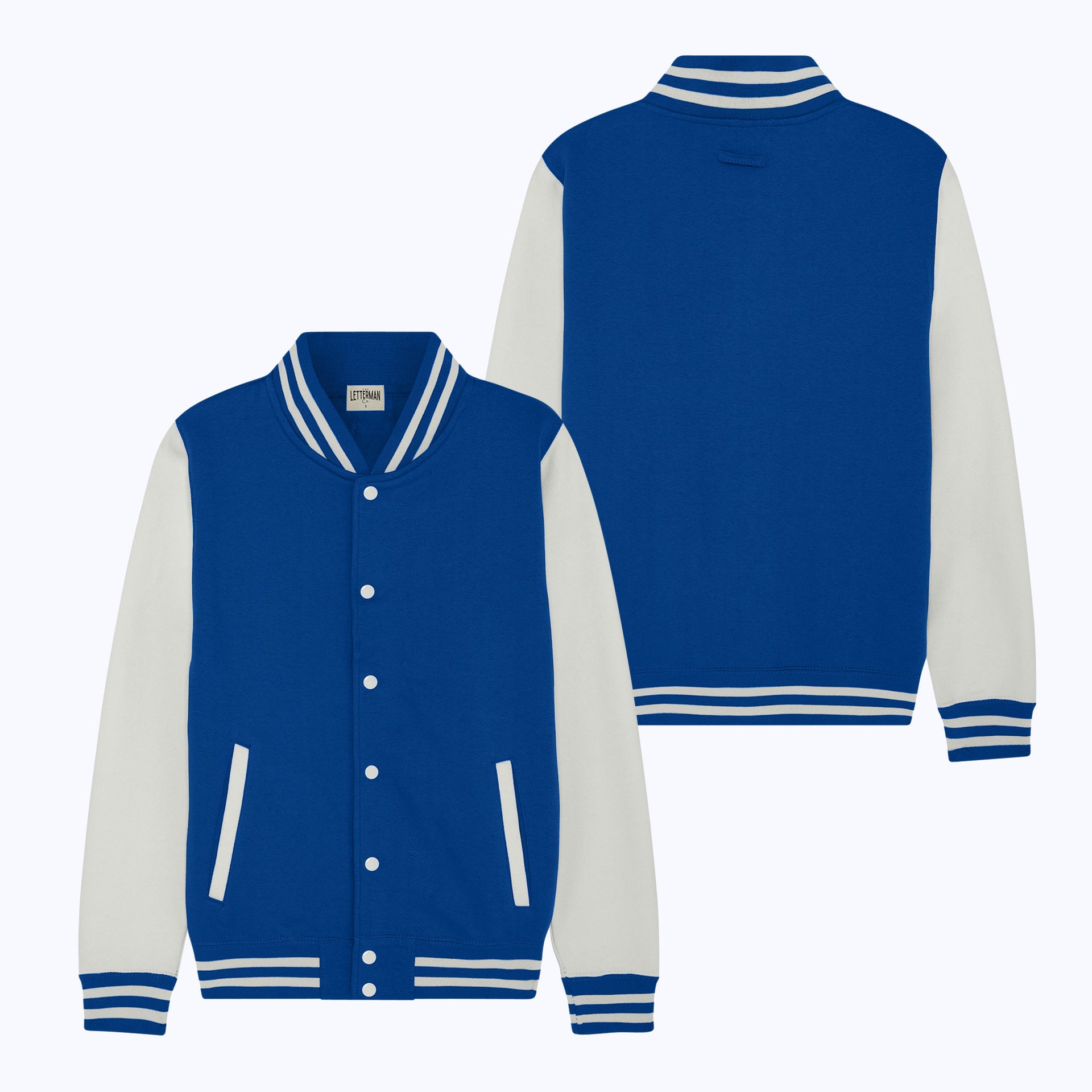 Adult Sweatshirt Varsity Jacket ROYAL BLUE/WHITE