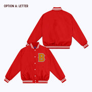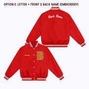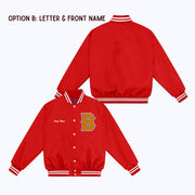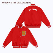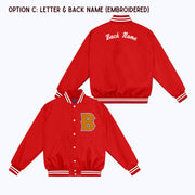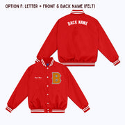 Personalized Custom Nylon Bomber Jacket with Chenille/Felt Letter Patch, and options to add embroidered and/or felt appliqué name(s)