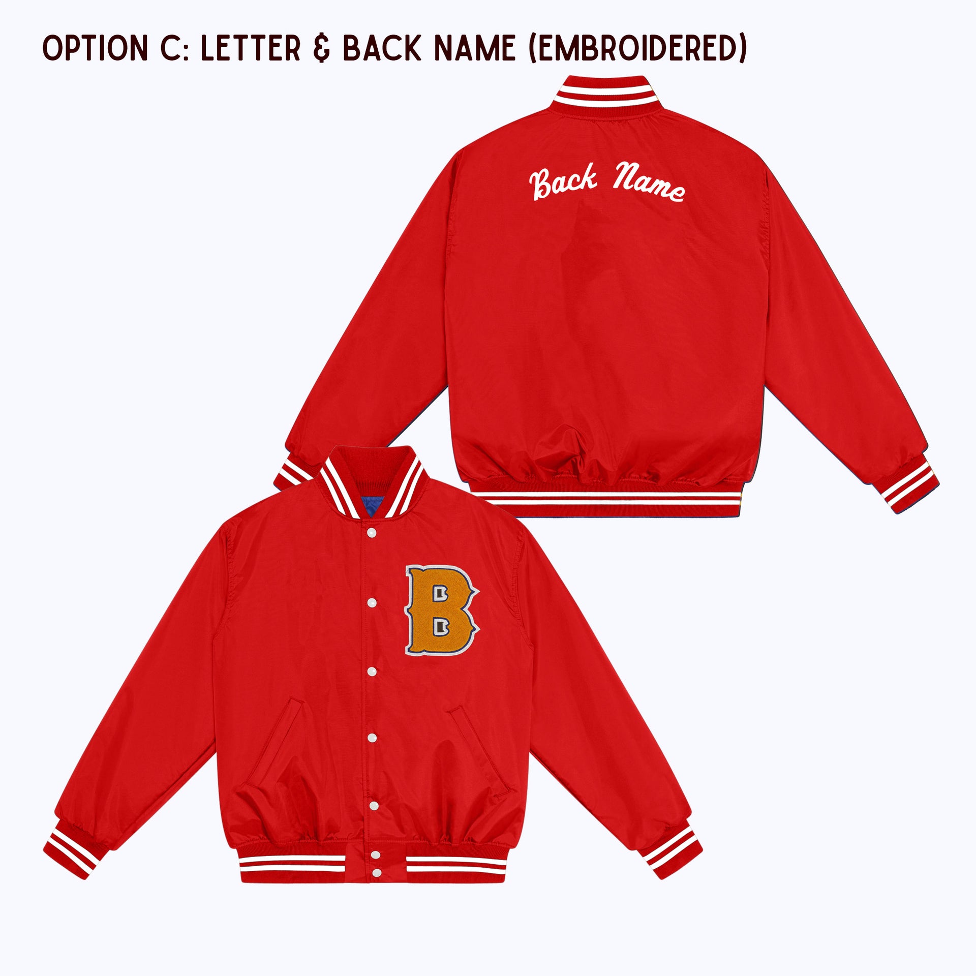 OPTION C: Varsity Letter Patch + Back Name Embroidery
