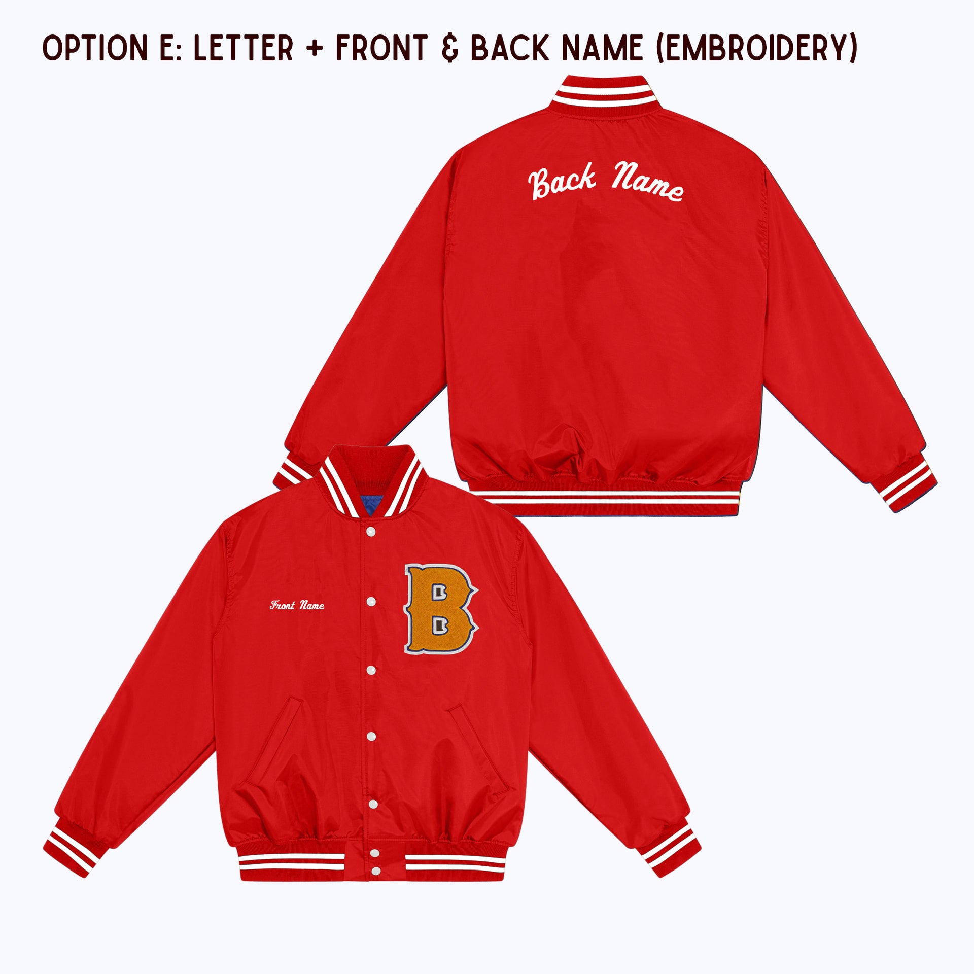 OPTION E: Varsity Letter Patch + Front Name Embroidery + Back Name Embroidery