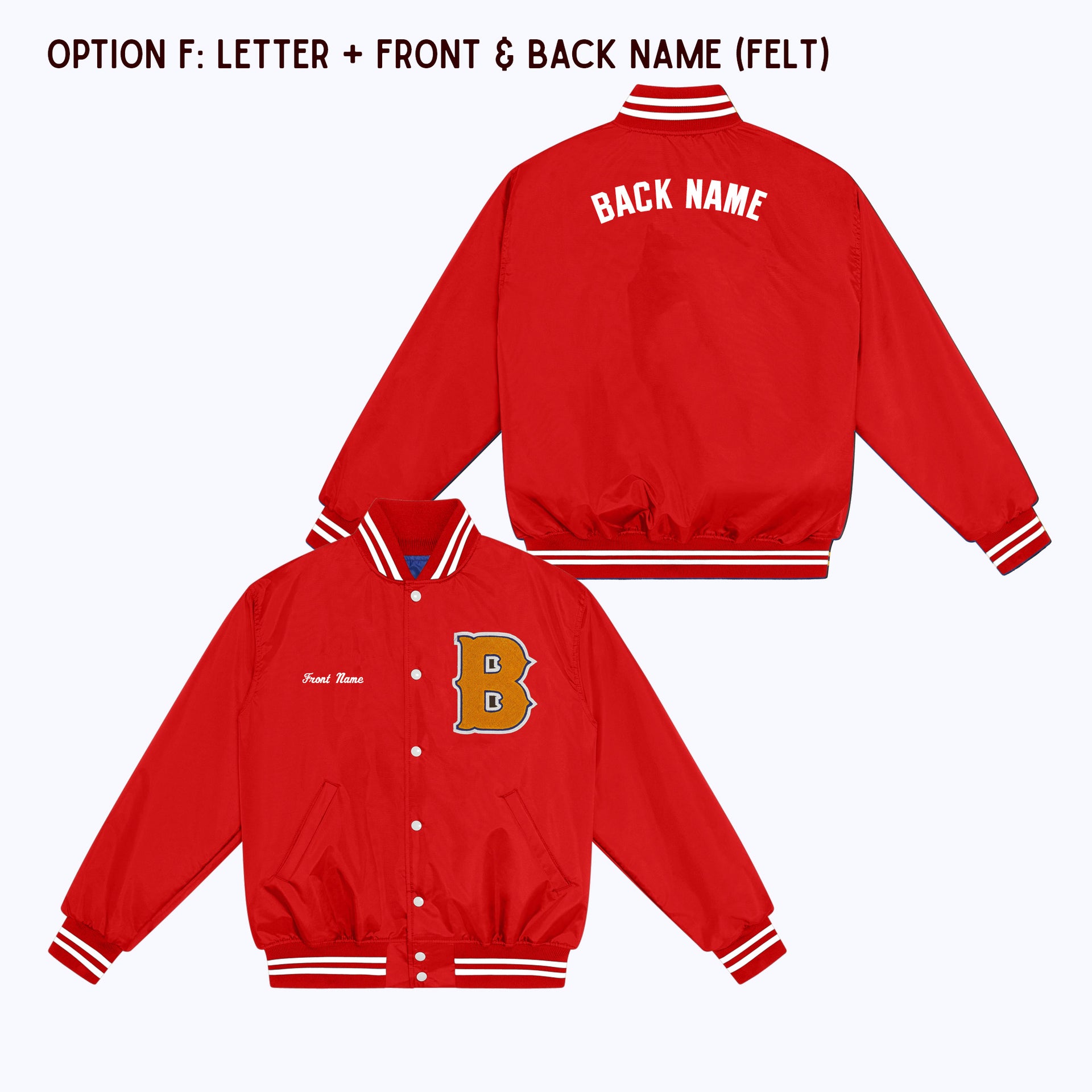 OPTION D: Varsity Letter Patch + Back Name Felt Appliqué