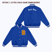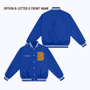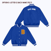 Personalized Custom Nylon Bomber Jacket with Chenille/Felt Letter Patch, and options to add embroidered and/or felt appliqué name(s)