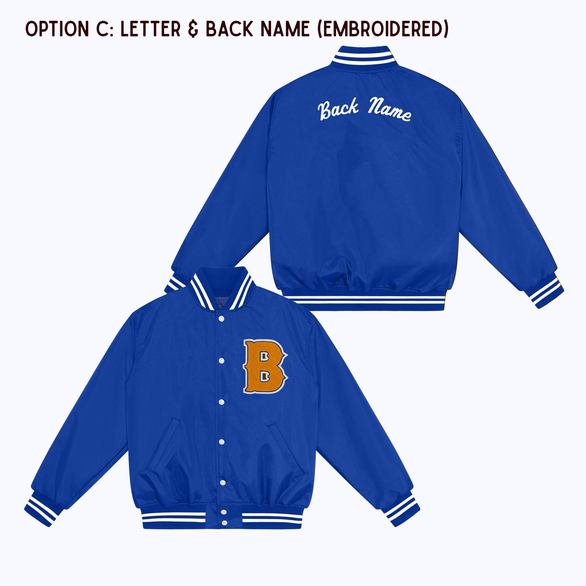 OPTION C: Varsity Letter Patch + Back Name Embroidery