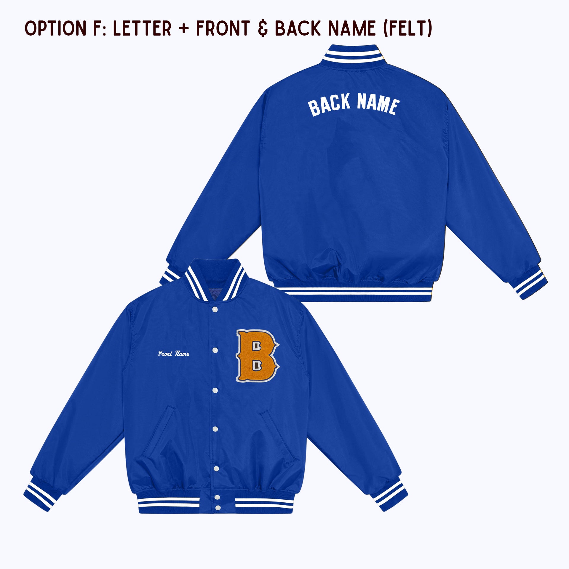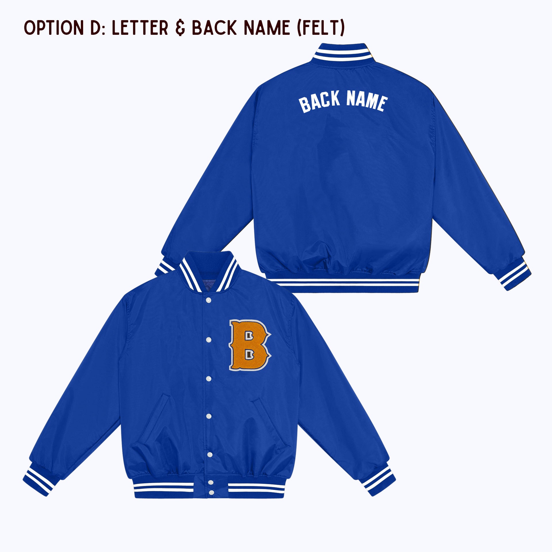 OPTION D: Varsity Letter Patch + Back Name Felt Appliqué