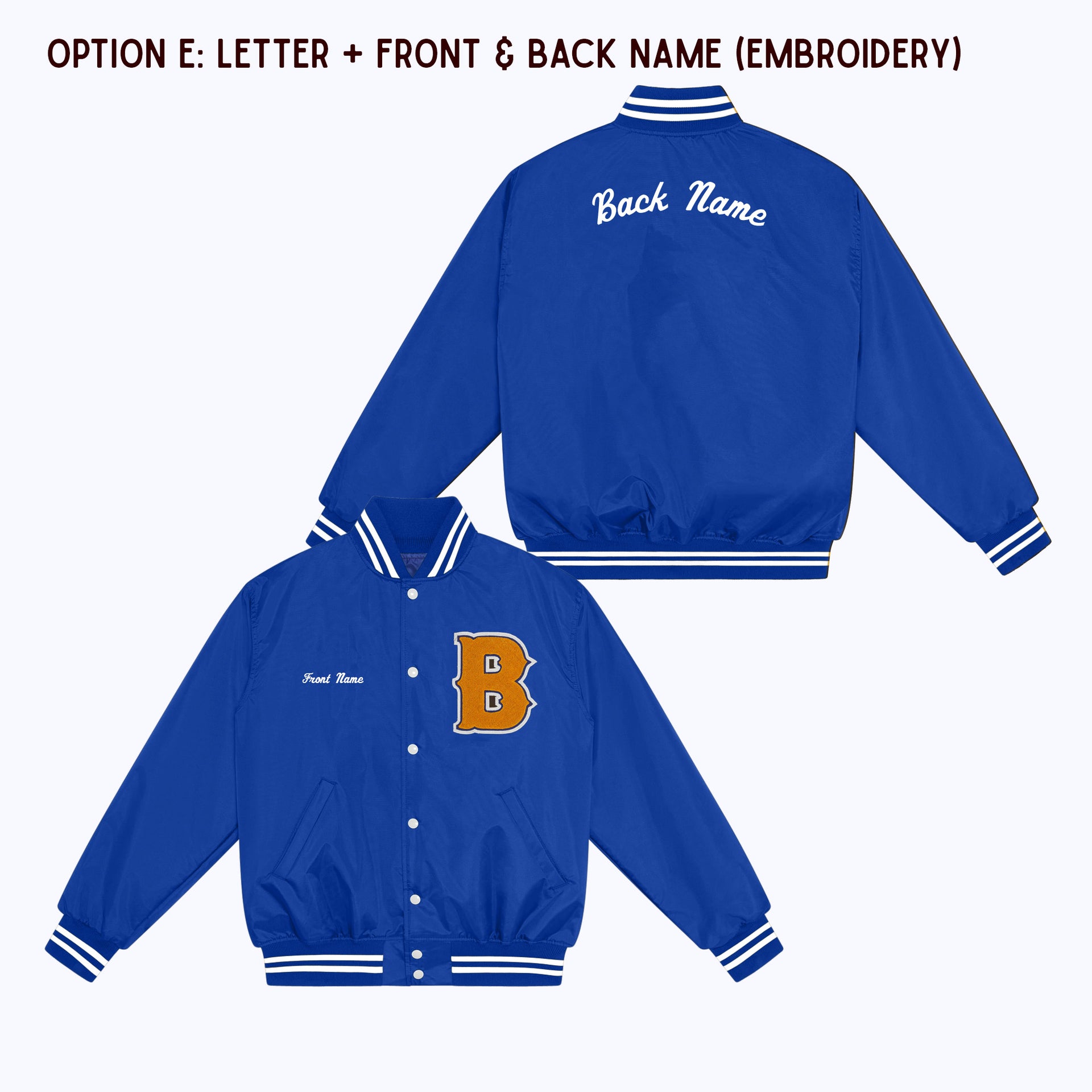OPTION E: Varsity Letter Patch + Front Name Embroidery + Back Name Embroidery