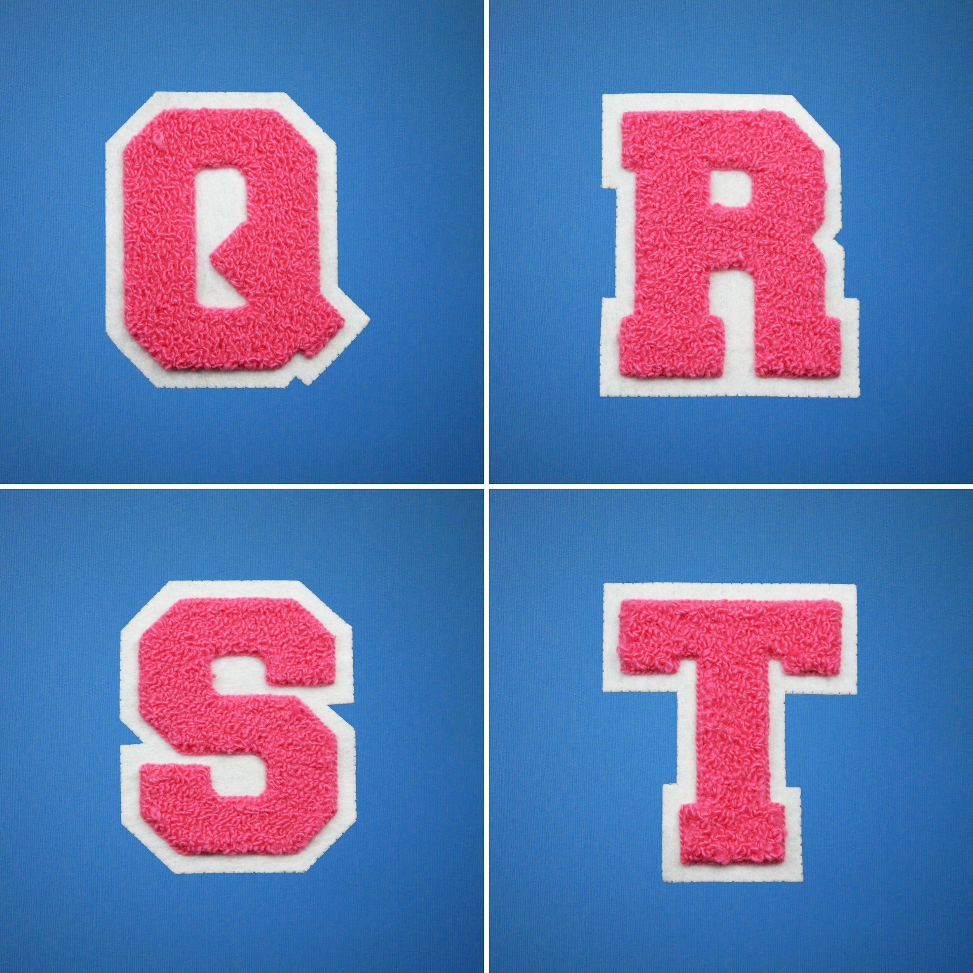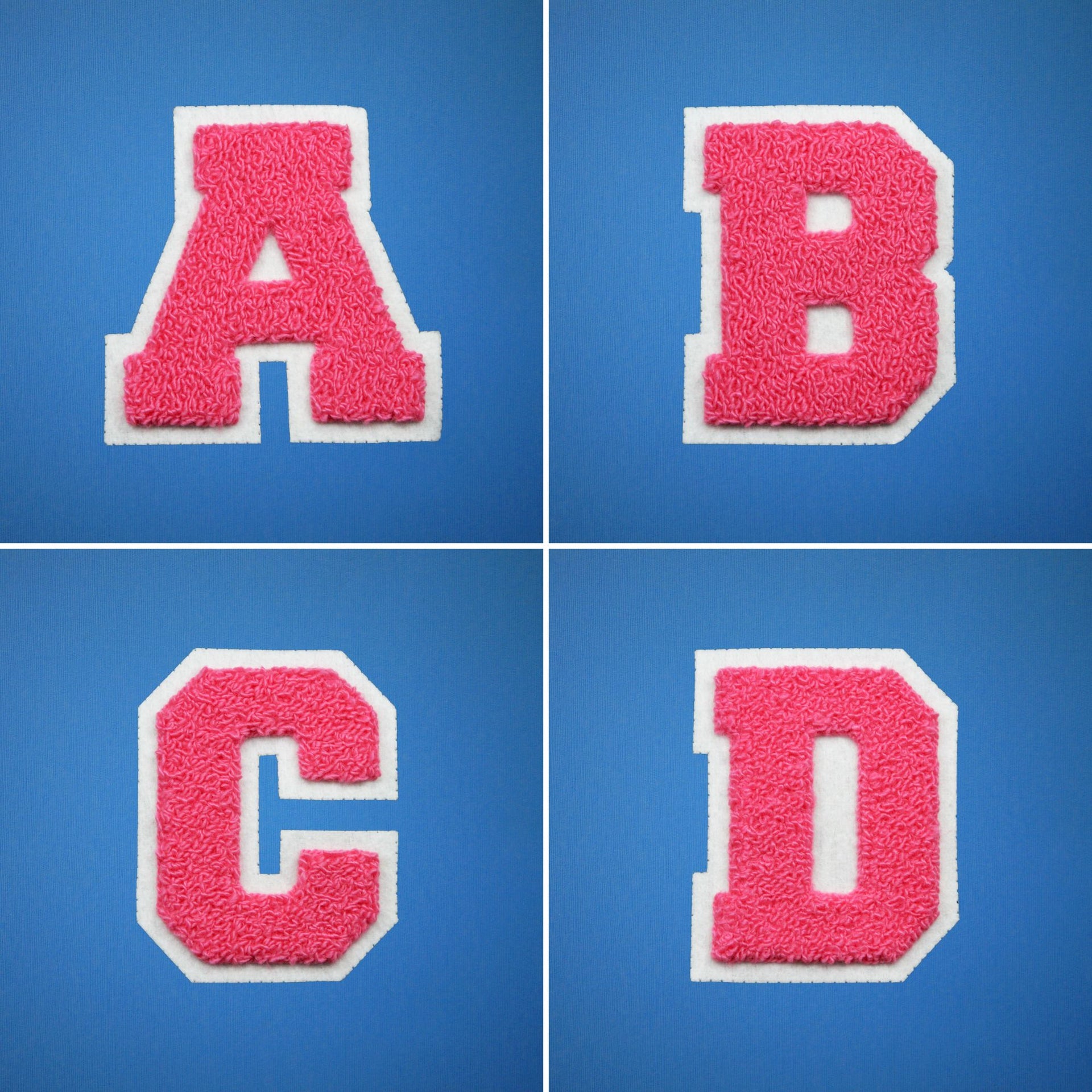MEDIUM Varsity Letter Chenille Felt Patch 3.5" Bright Pink/ White