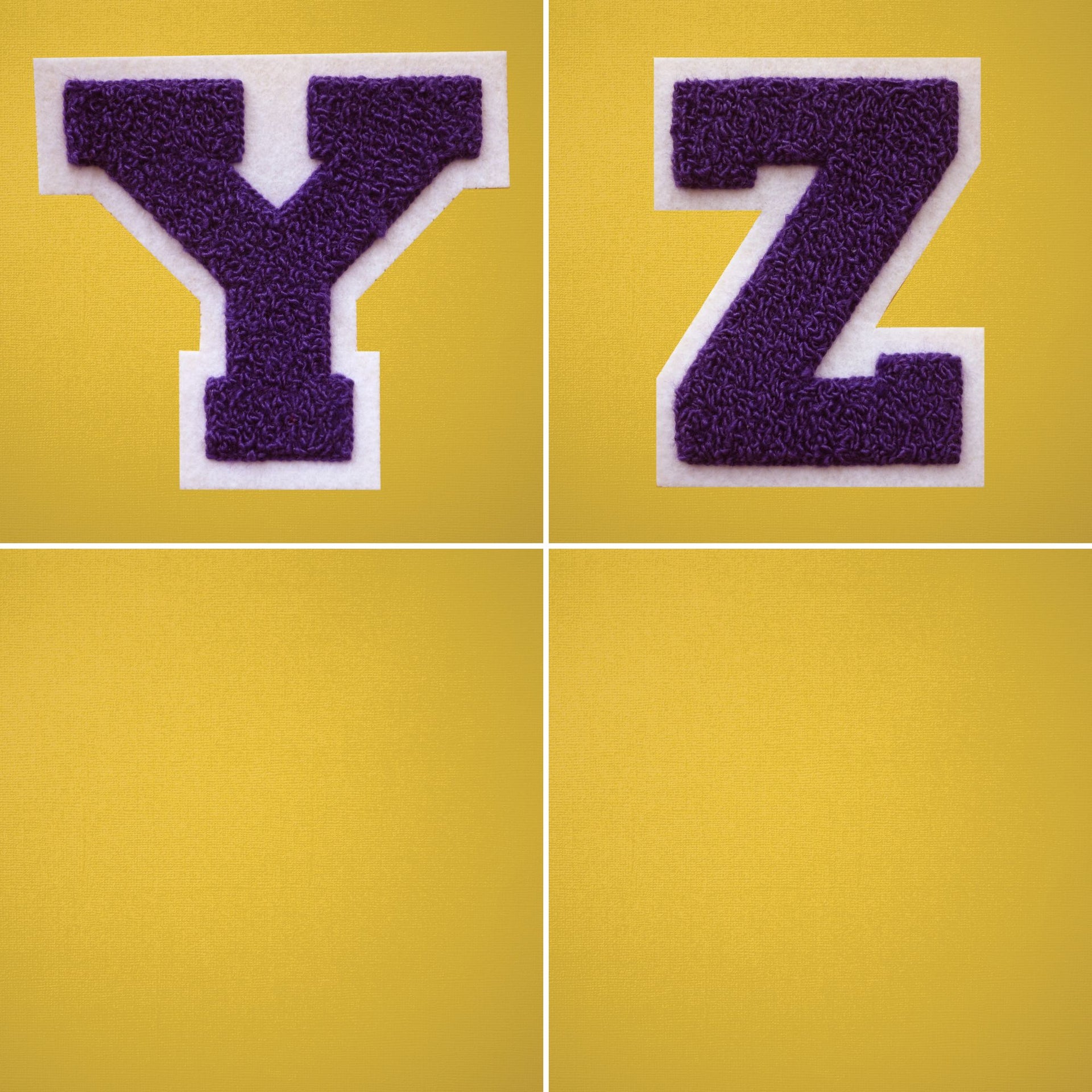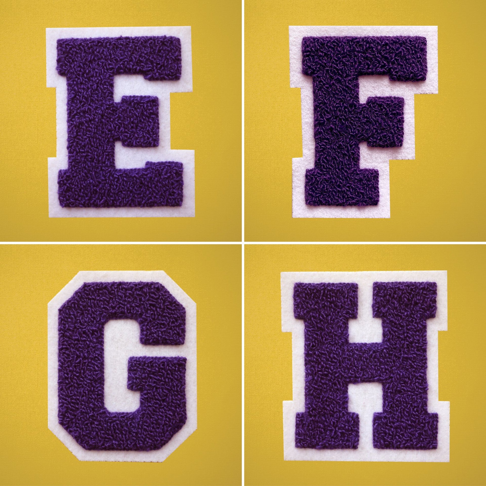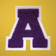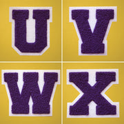LARGE Varsity Letter Chenille Felt Patch 4.5" Purple/ White