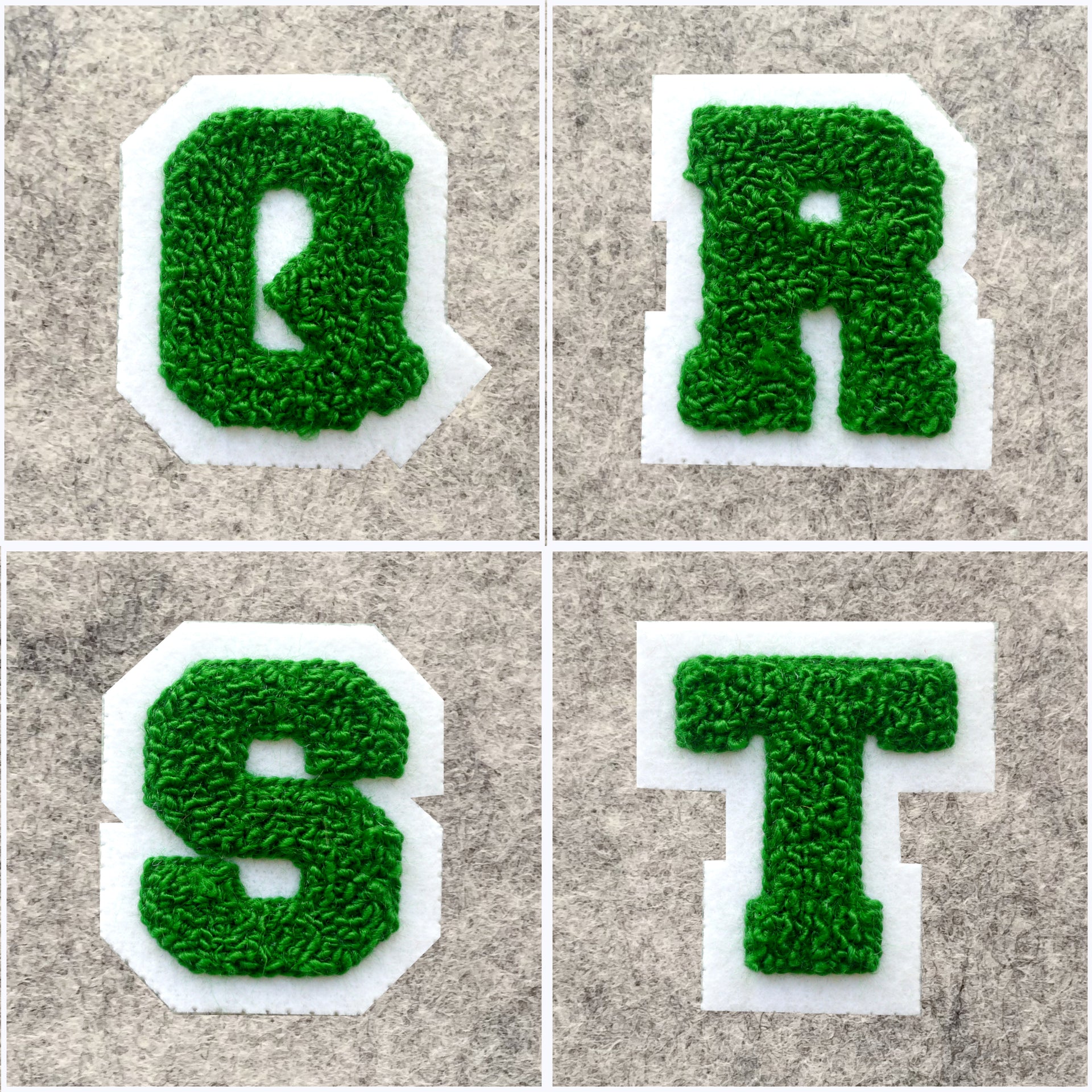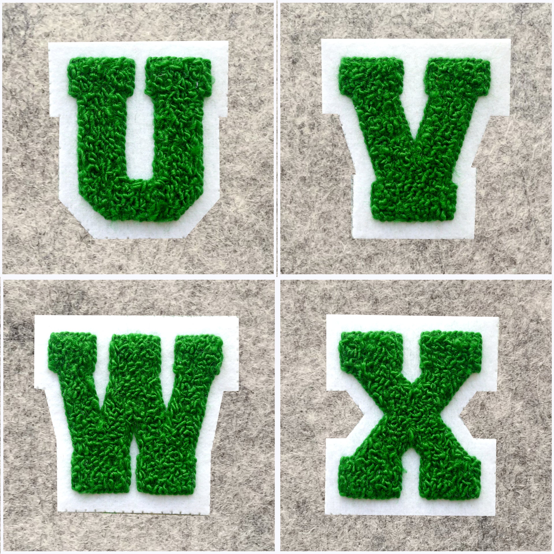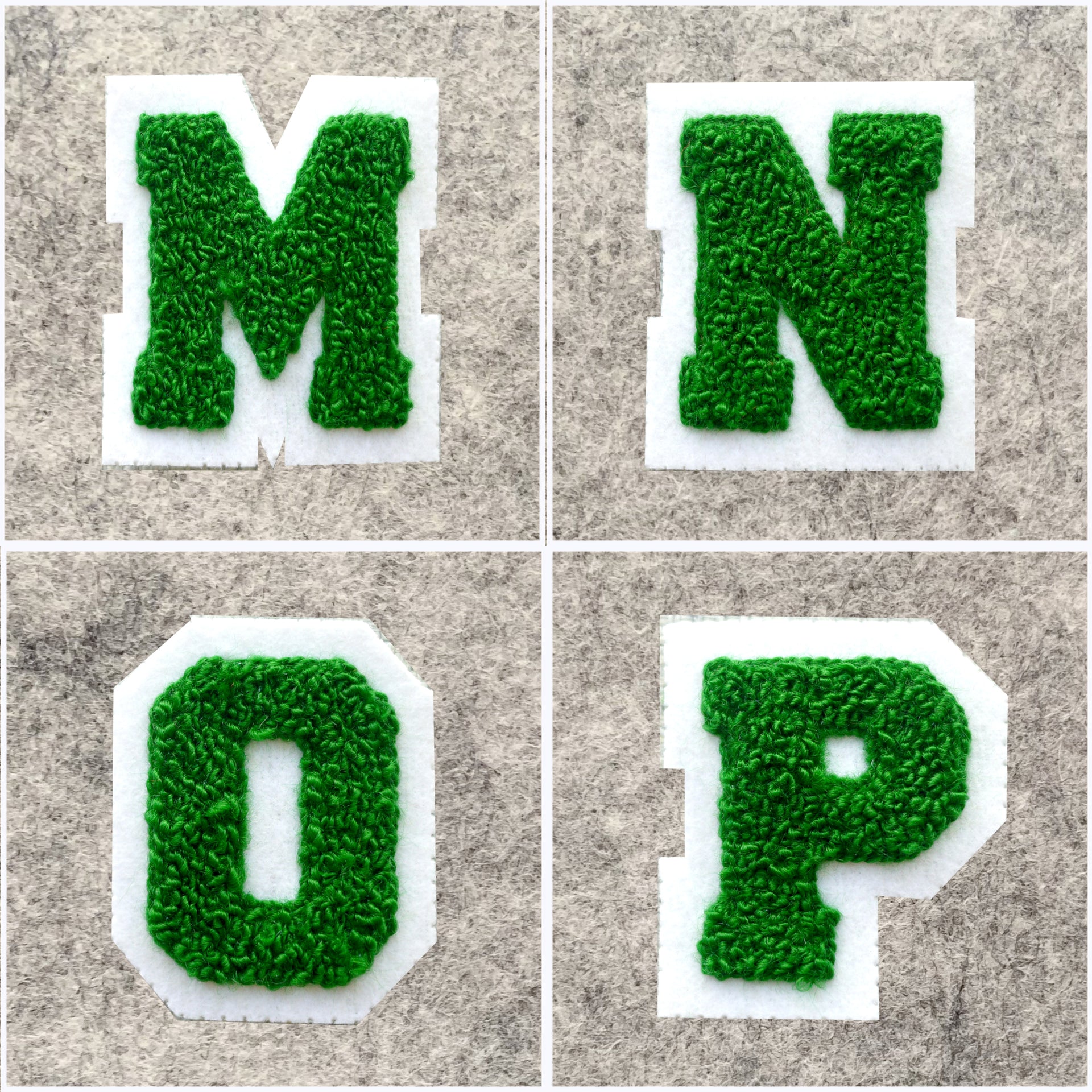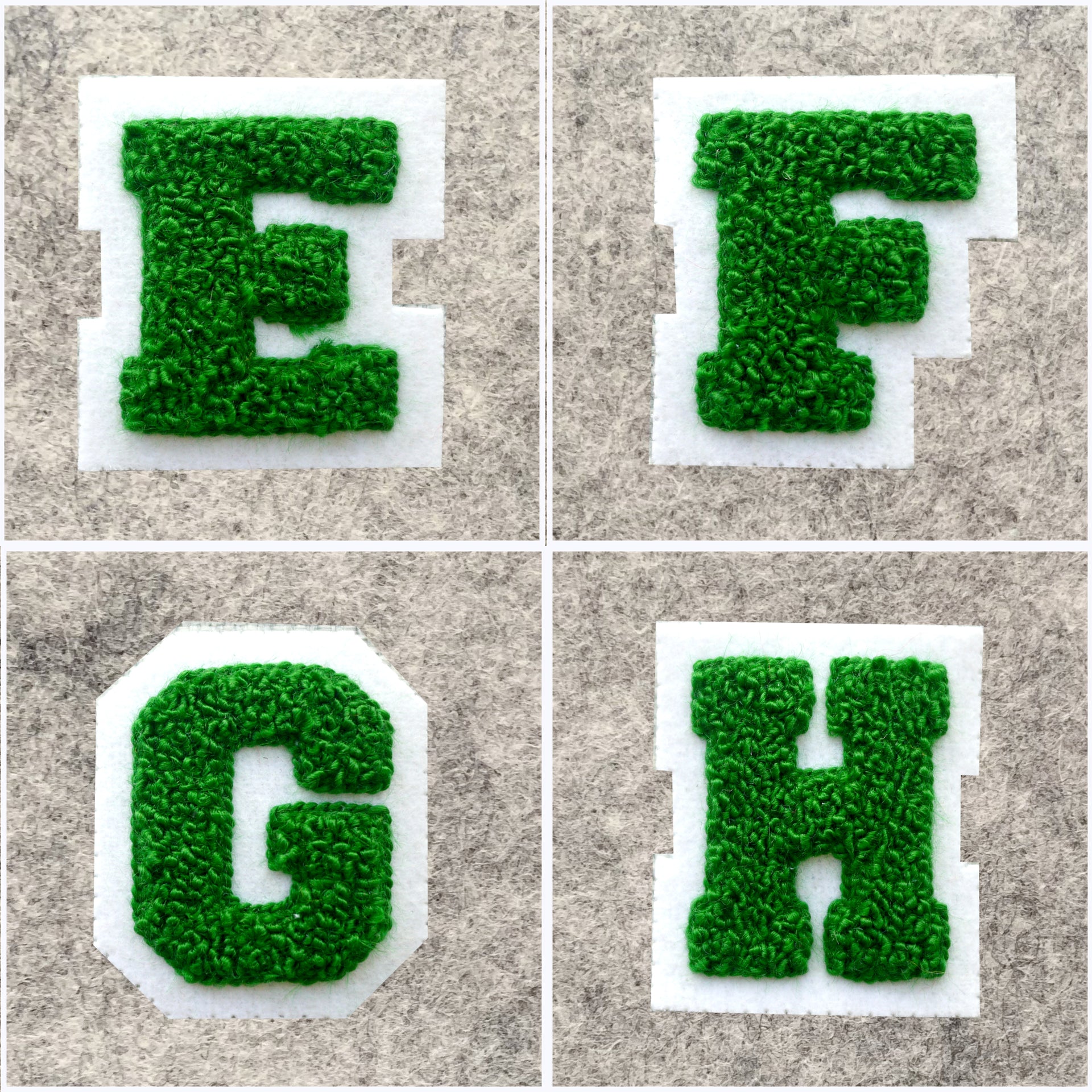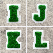 SMALL Varsity Letter Chenille Felt Patch 2" Kelly Green/White