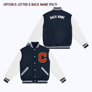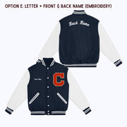 Personalized Custom Wool Varsity Jacket with Varsity Letter Patch, and options to add embroidered and/or felt appliqué name(s)