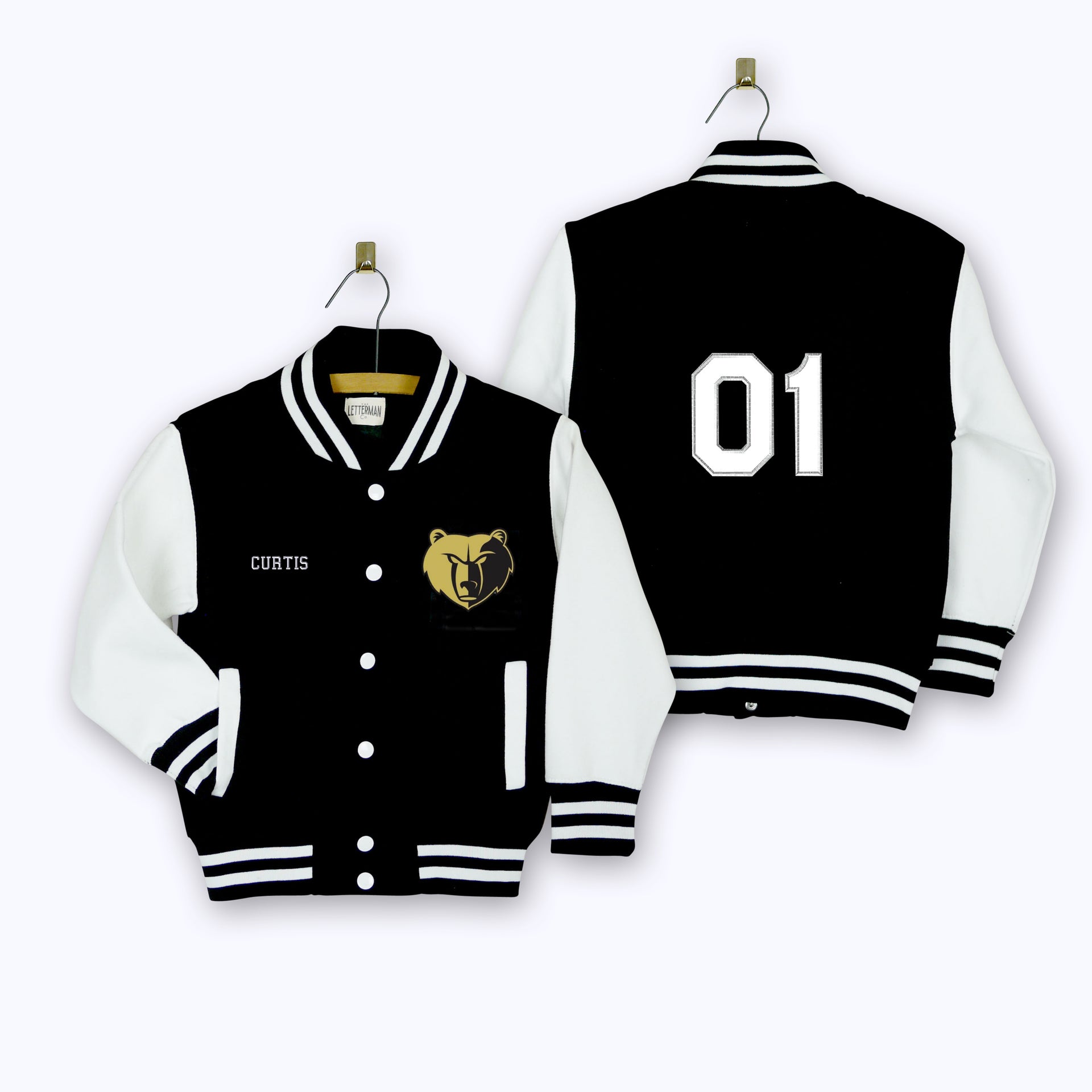 Soft cotton blend brushback sweatshirt fleece Baseball jacket with embroidered GRIZZLIES BEAR patch