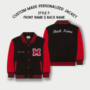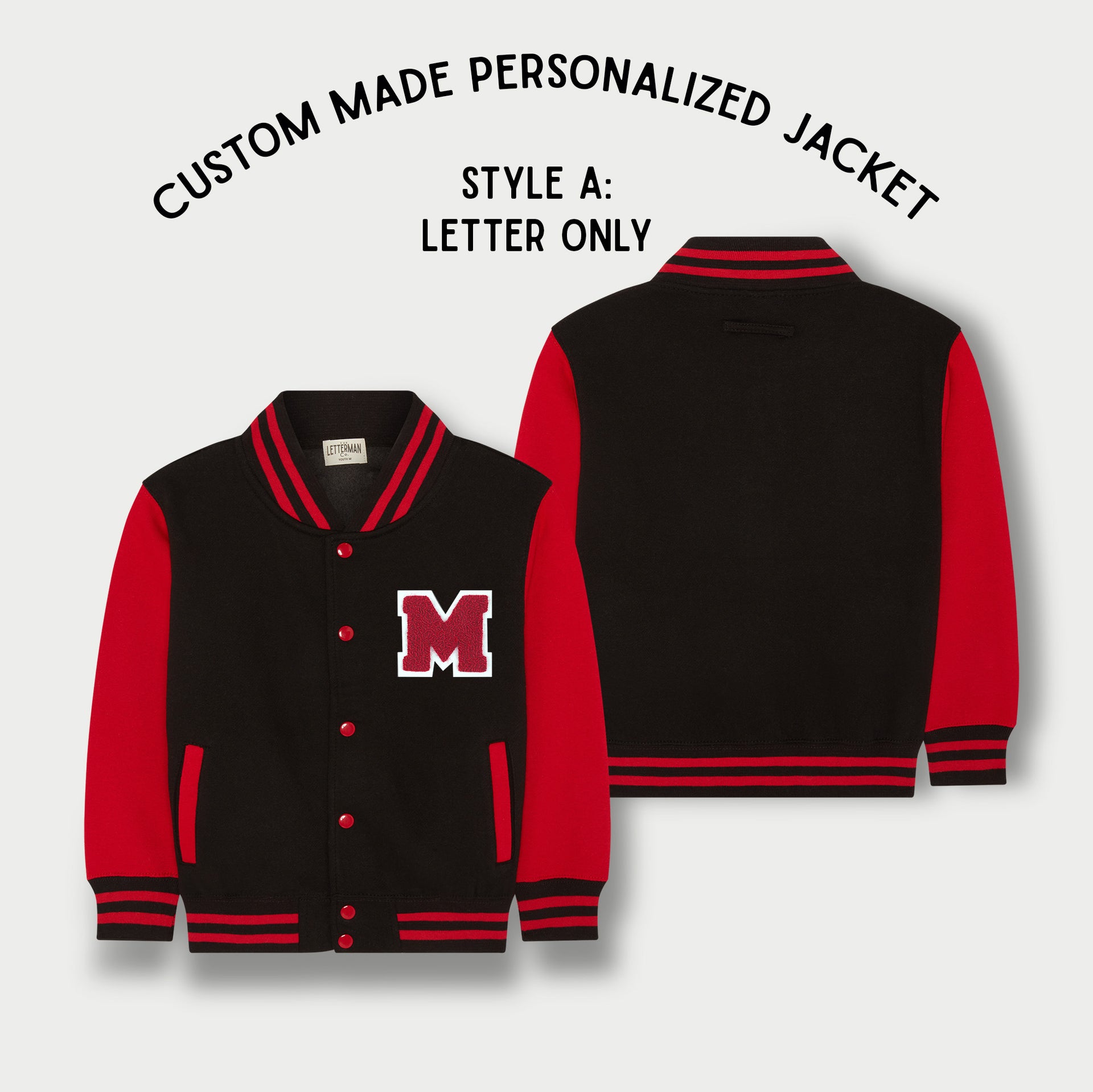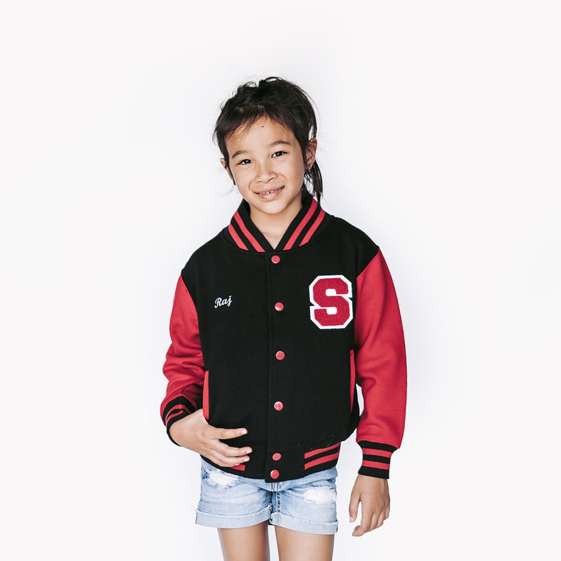 Personalized Kids Sweatshirt Varsity Jacket BLACK/RED