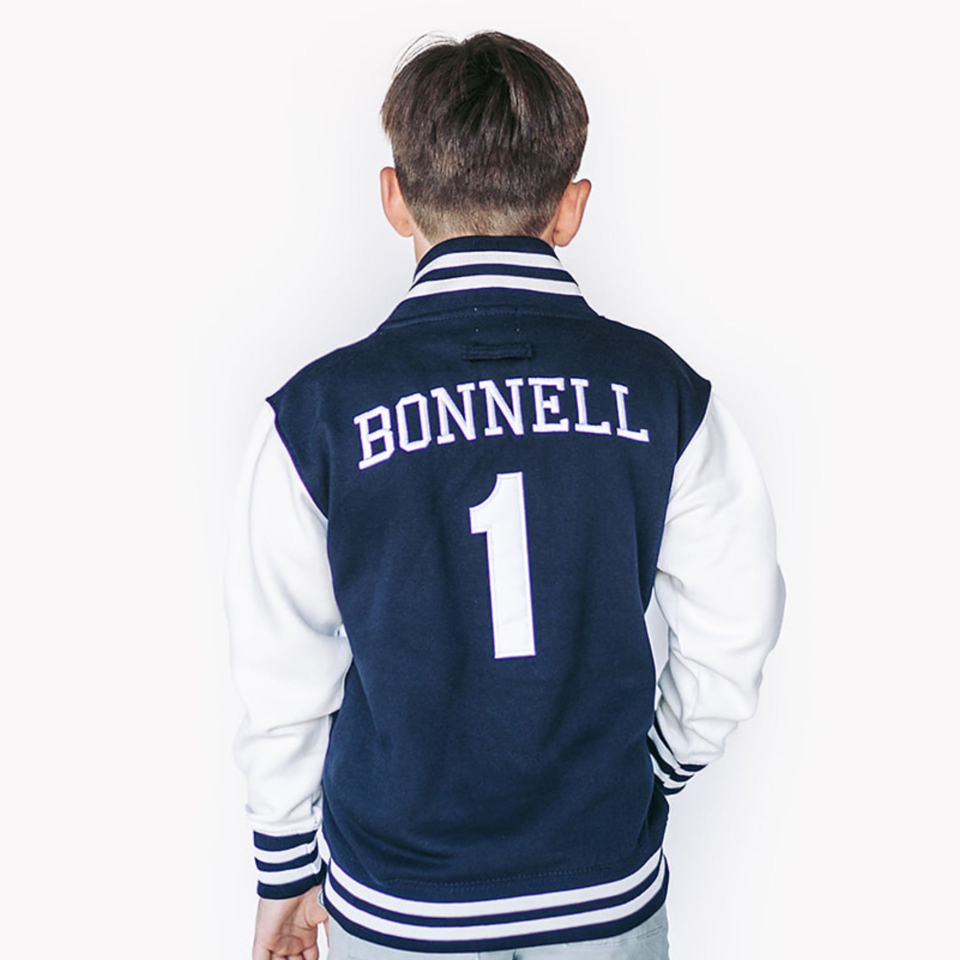 Personalized Kids Sweatshirt Varsity Jacket NAVY/WHITE
