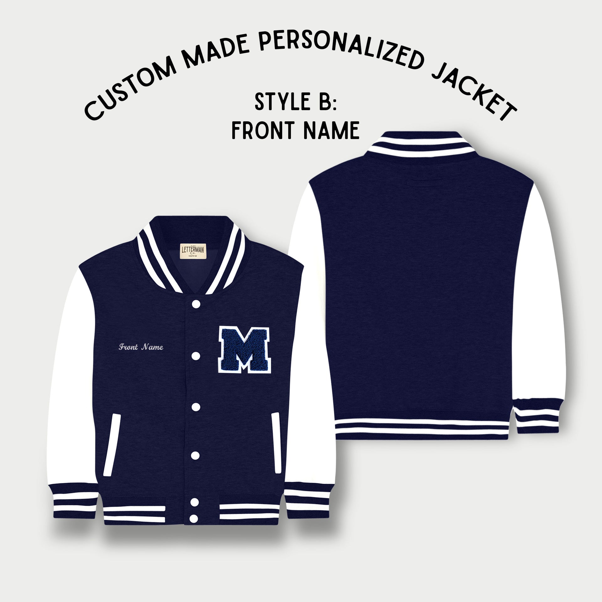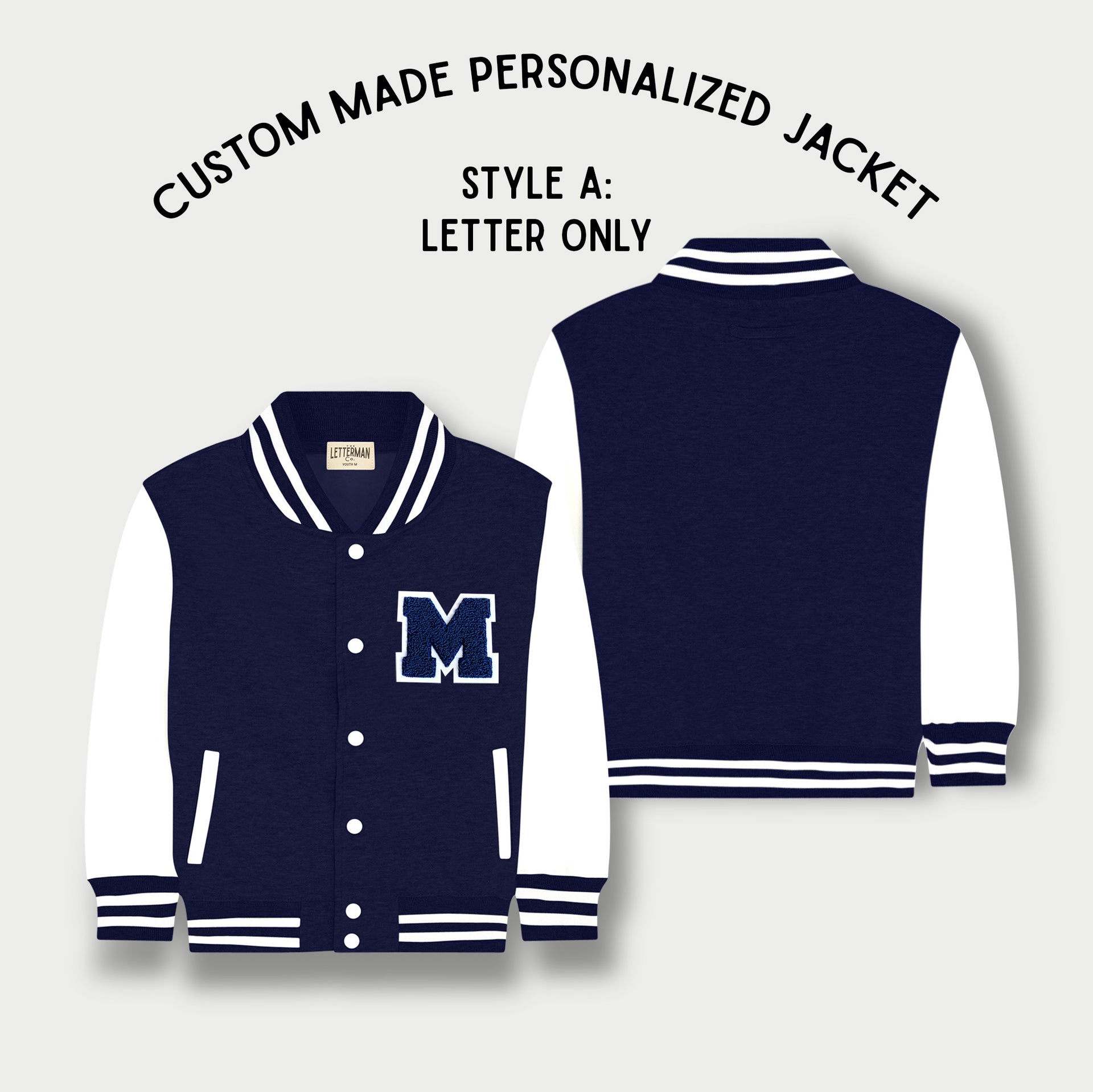 - Sweatshirt Varsity Jacket with personalized varsity letter patch