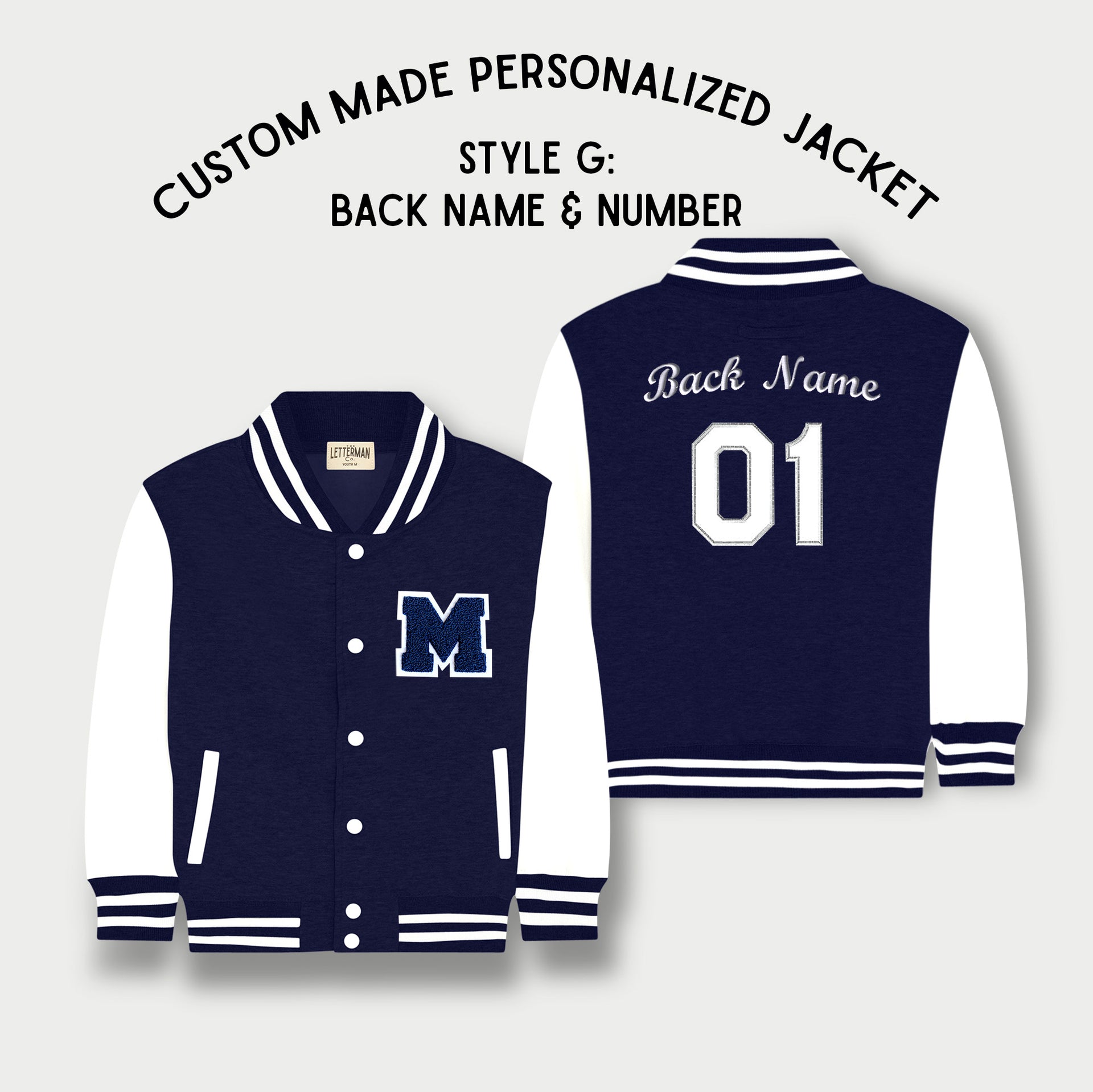 OPTION G: Varsity Letter Patch + Back Name Embroidery + Back Appliqué Number
