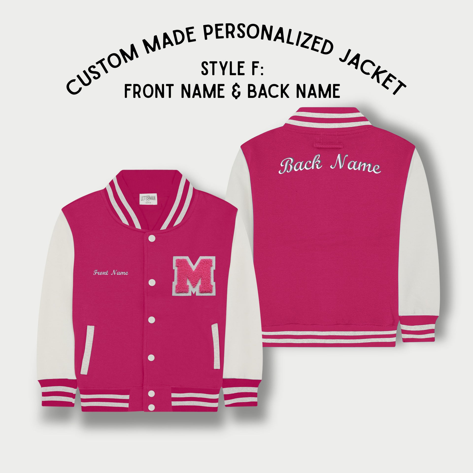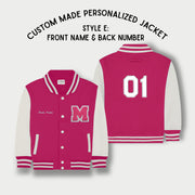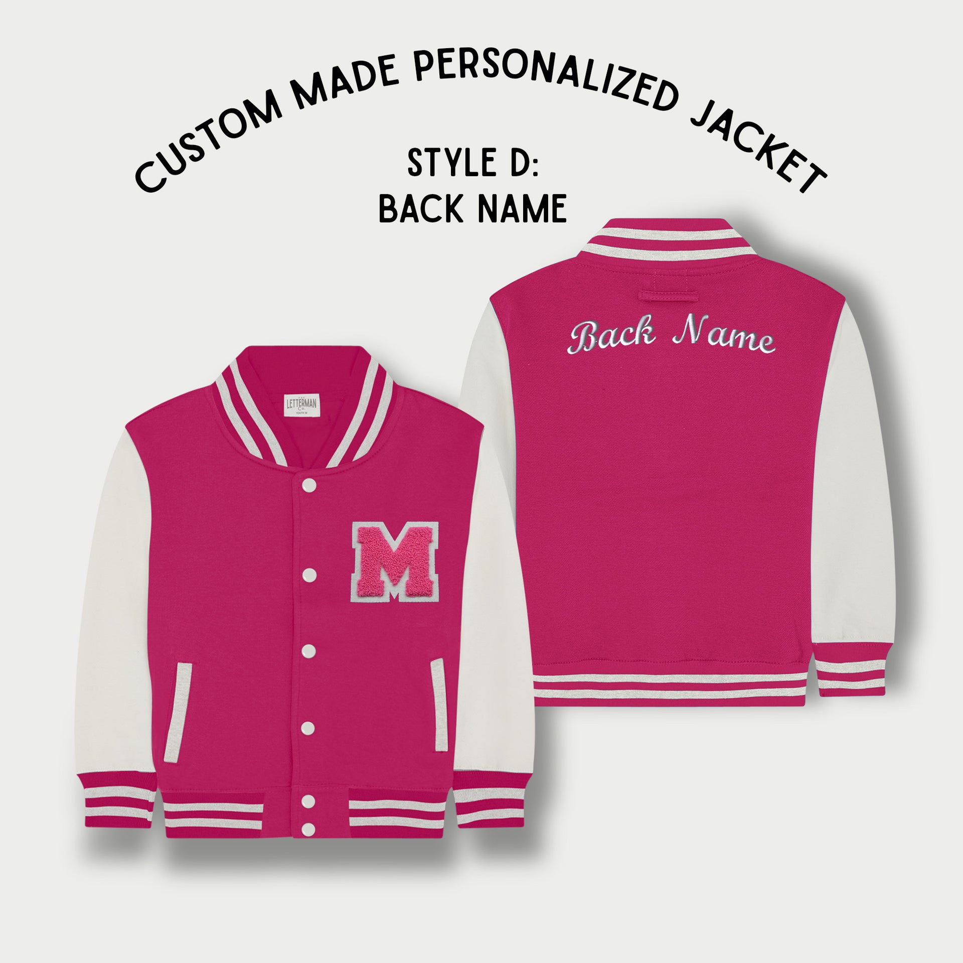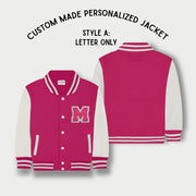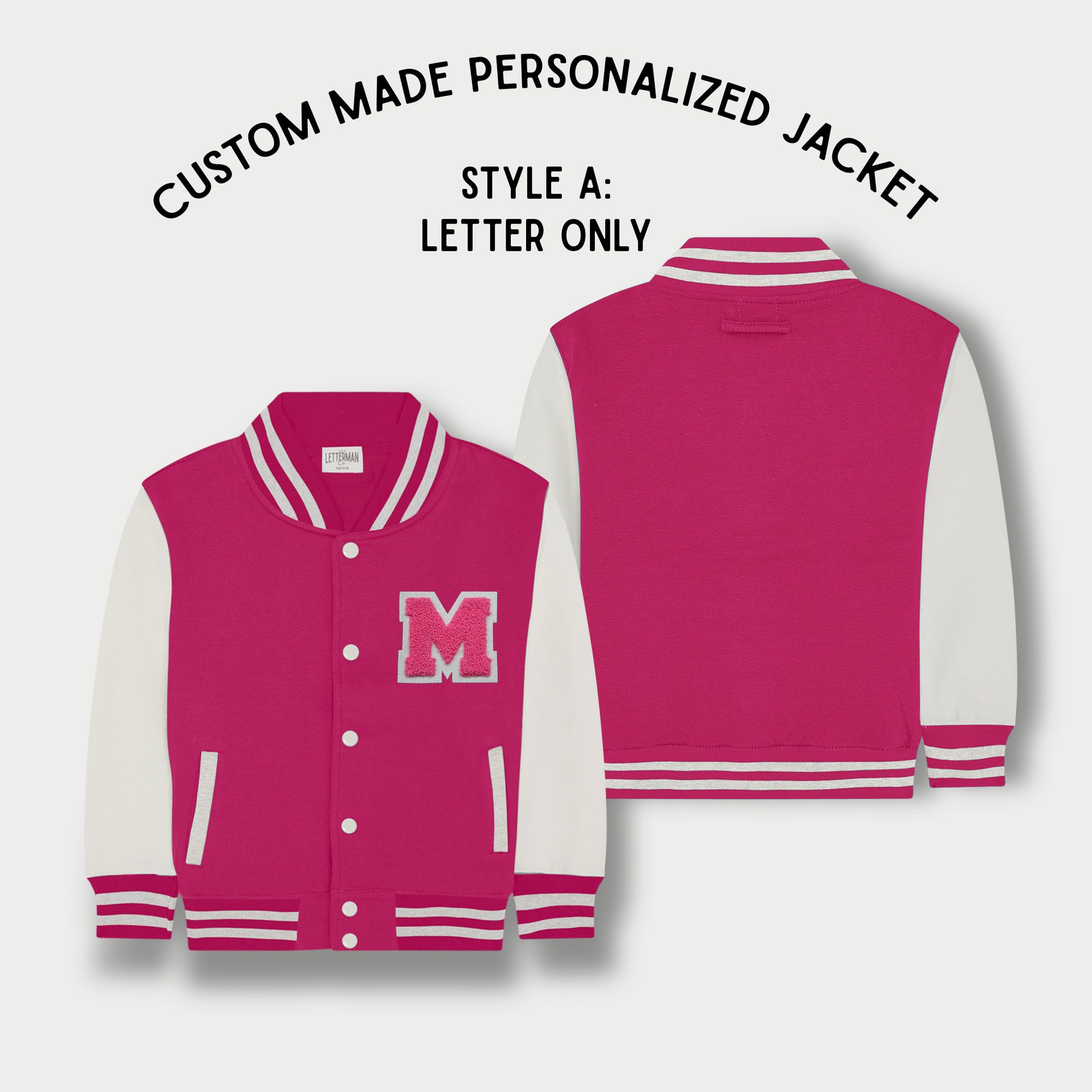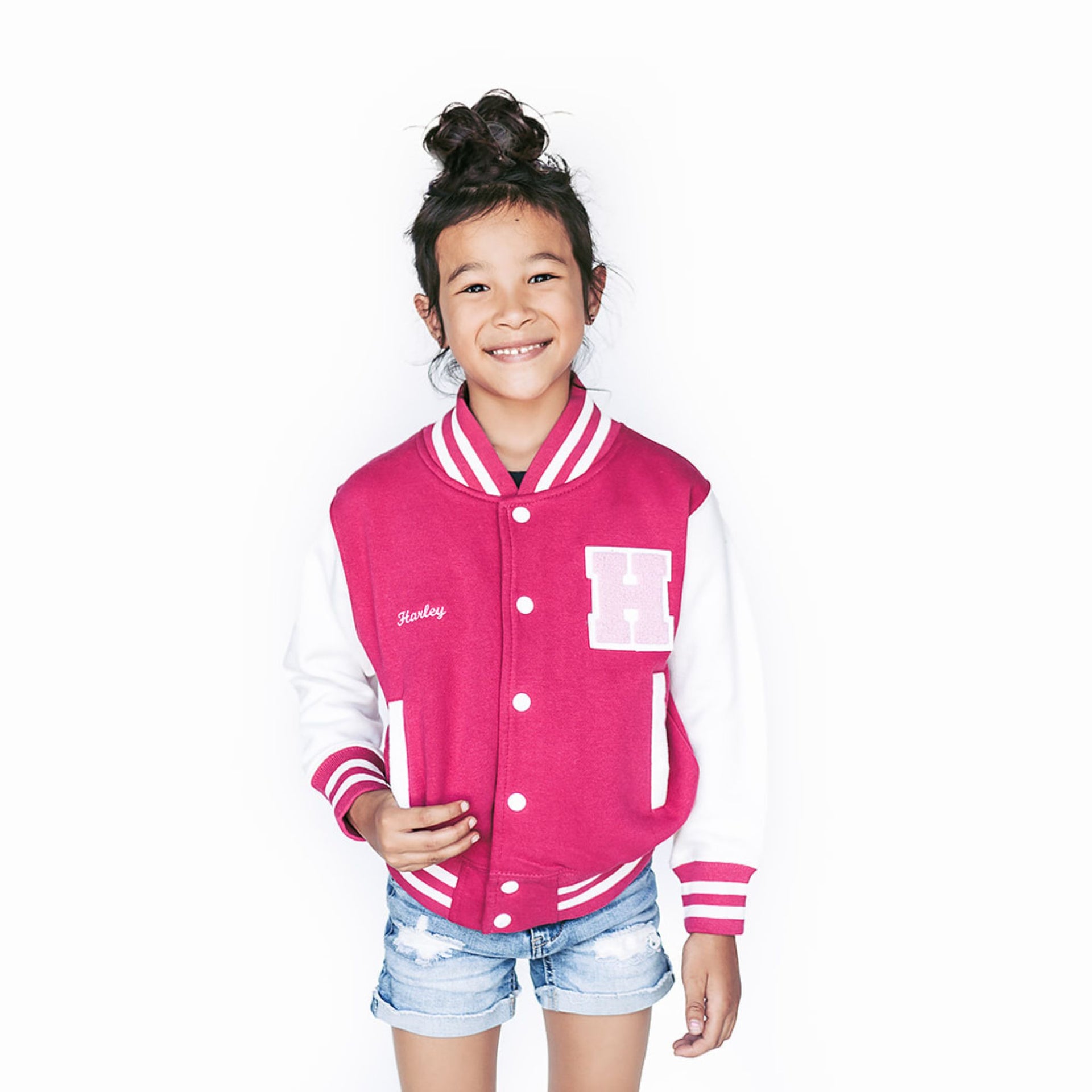 Personalized Kids Sweatshirt Varsity Jacket PINK/WHITE