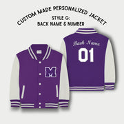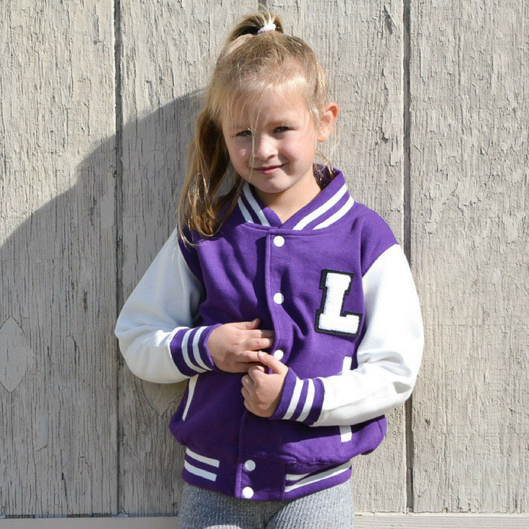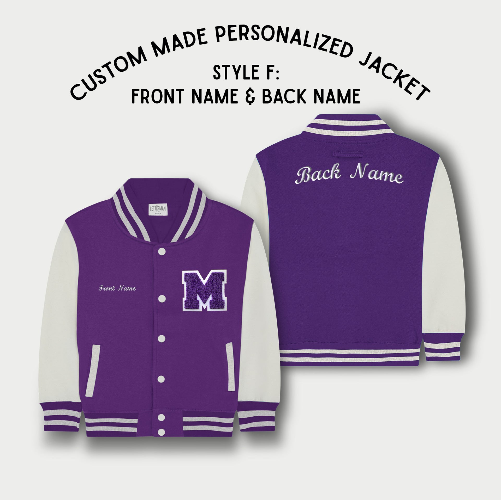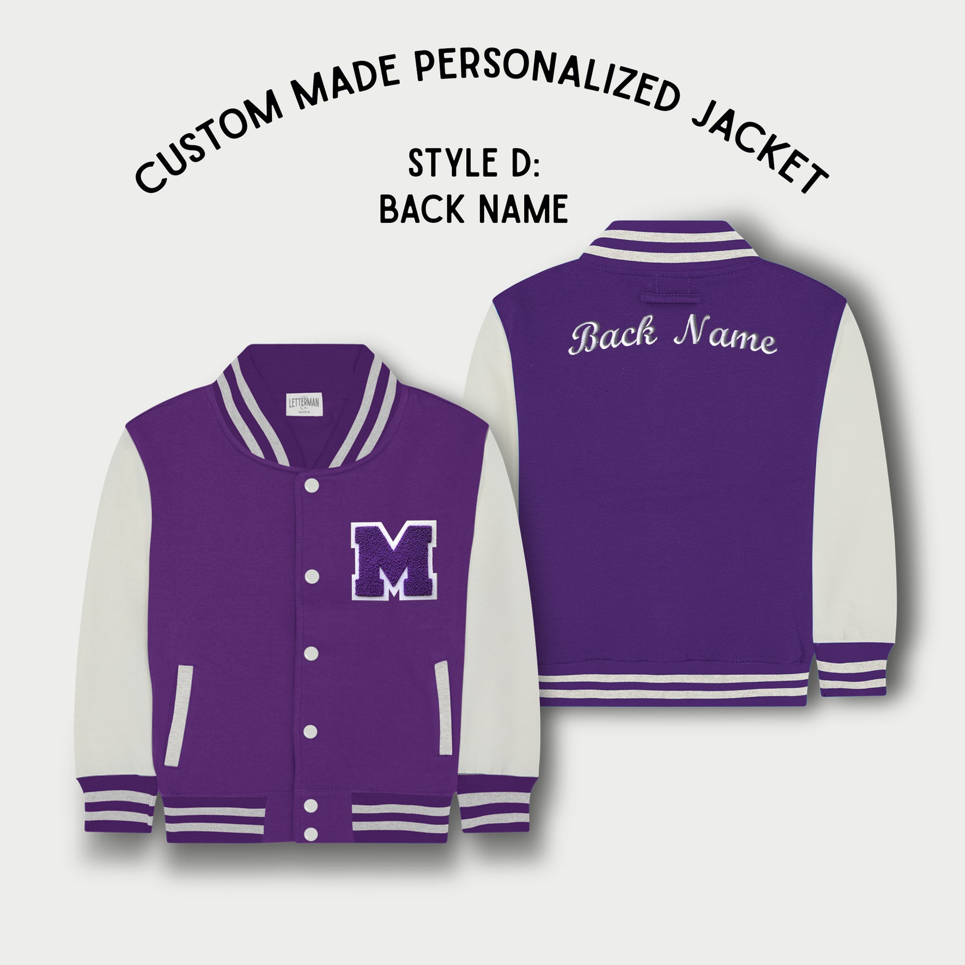 Personalized Kids Sweatshirt Varsity Jacket PURPLE/WHITE