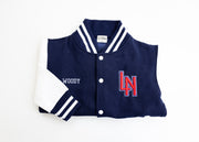 LNLL Kids Varsity Jacket. Made to order with LN puff embroidered logo. Option to add embroidered personalized name(s) & appliqué number