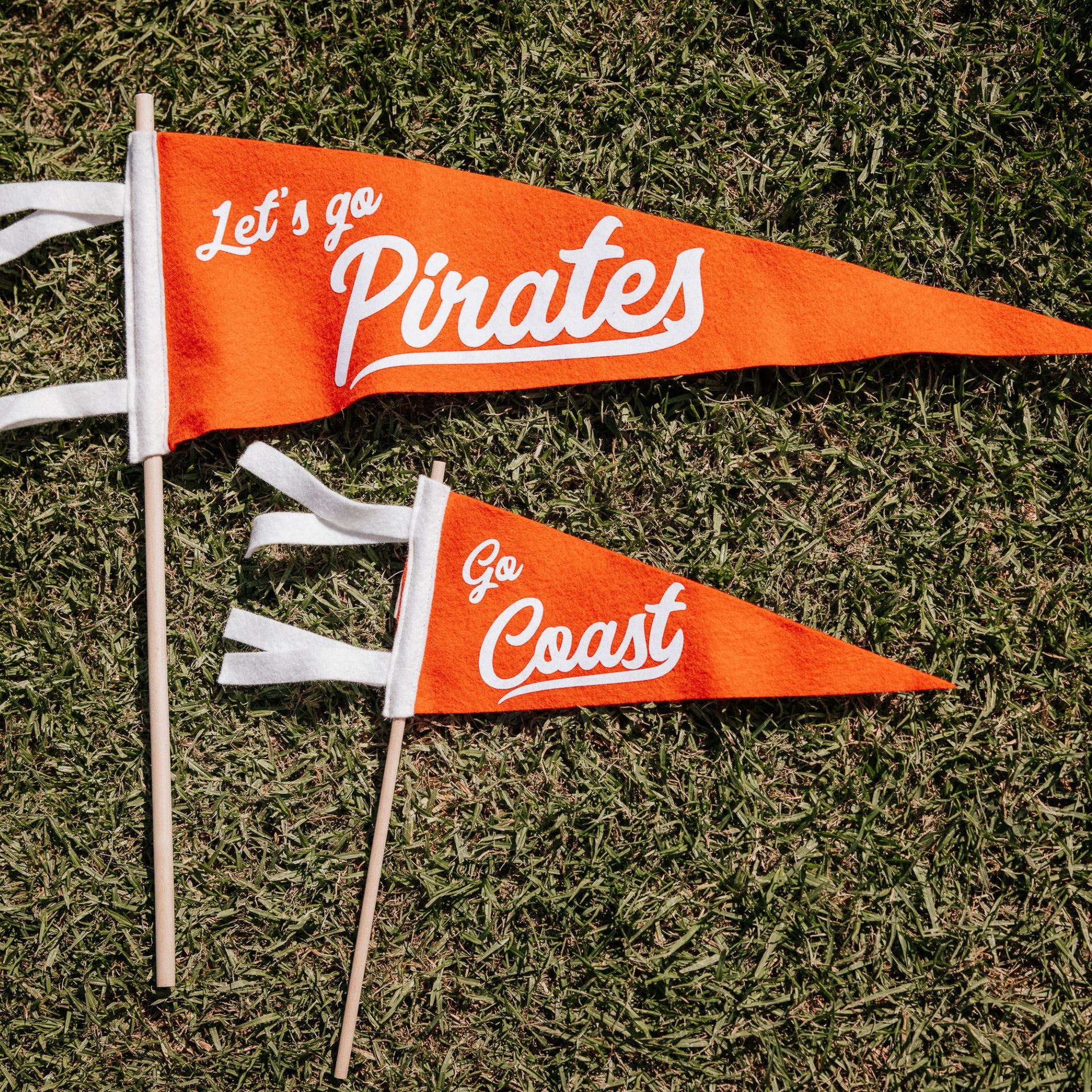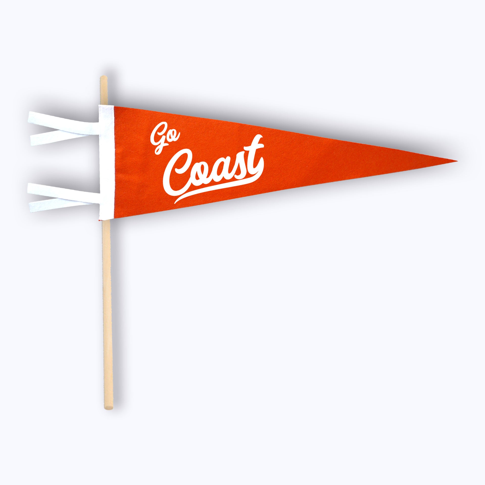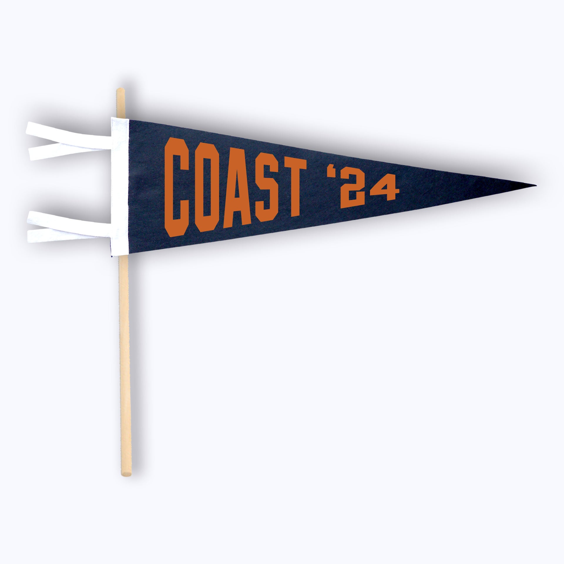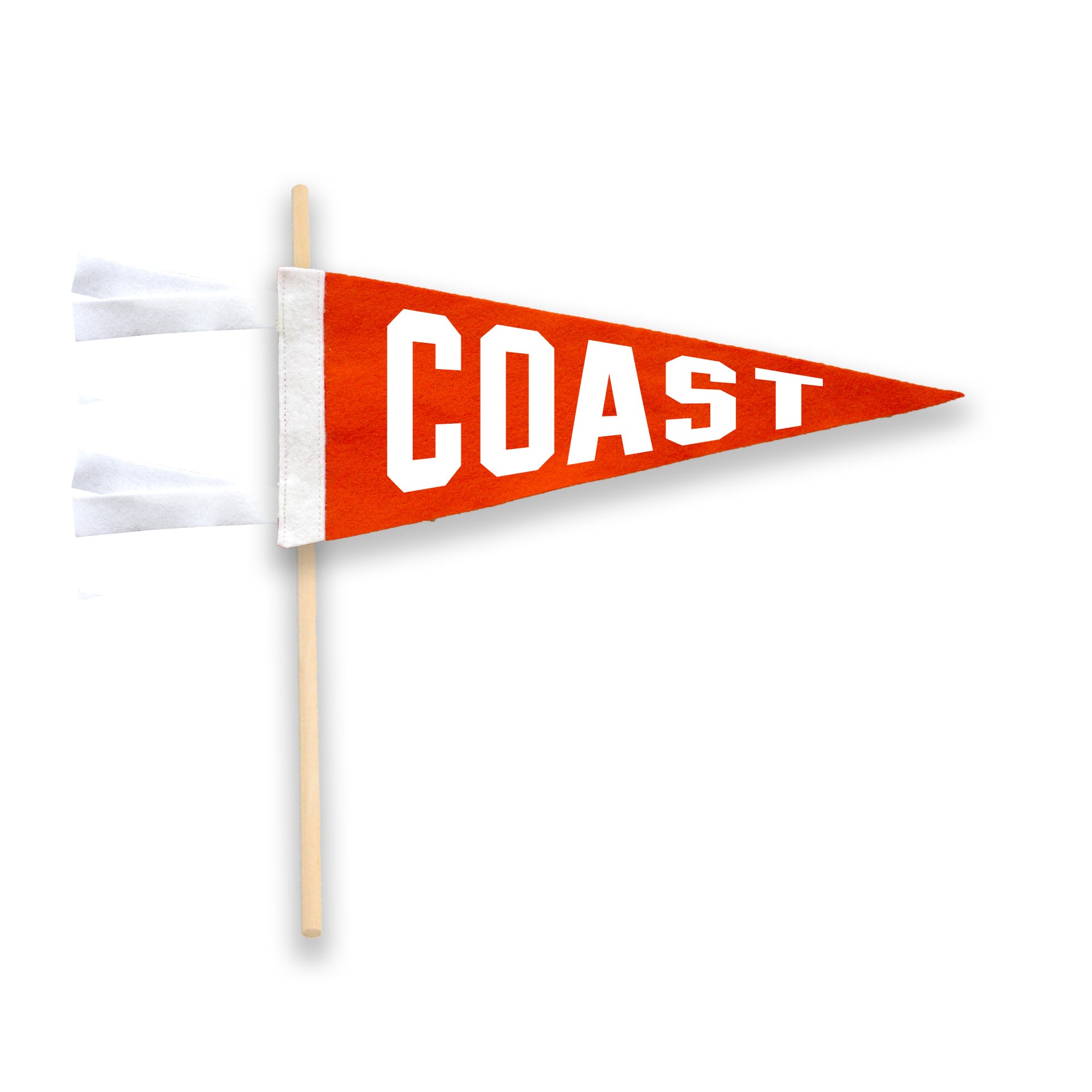 - Handmade wool blend felt pennant with soft flocked 'COAST' print.