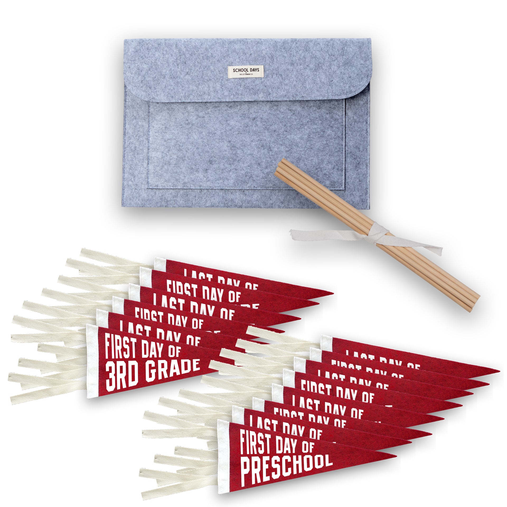 - Handmade Felt Pennant with soft flocked 'First Day/ Last Day Grade' print.