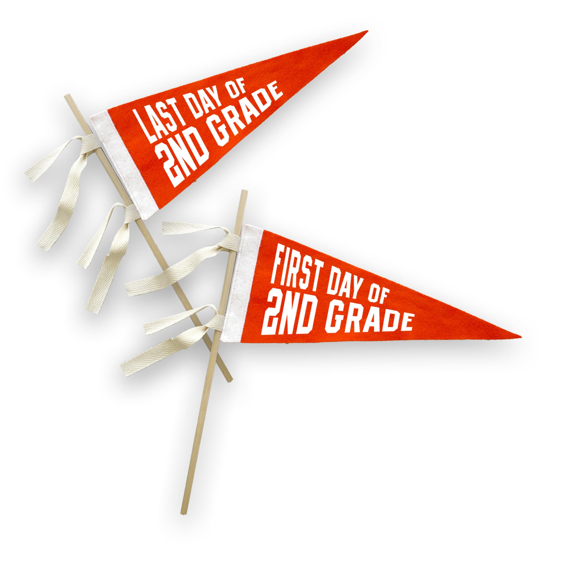 • Handmade Felt Pennant with soft flocked 'First Day/ Last Day Grade' print.