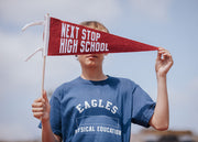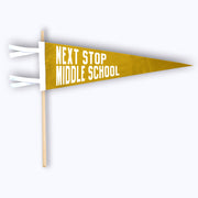 • Handmade wool blend felt pennant with soft flocked 'Next Stop' print.