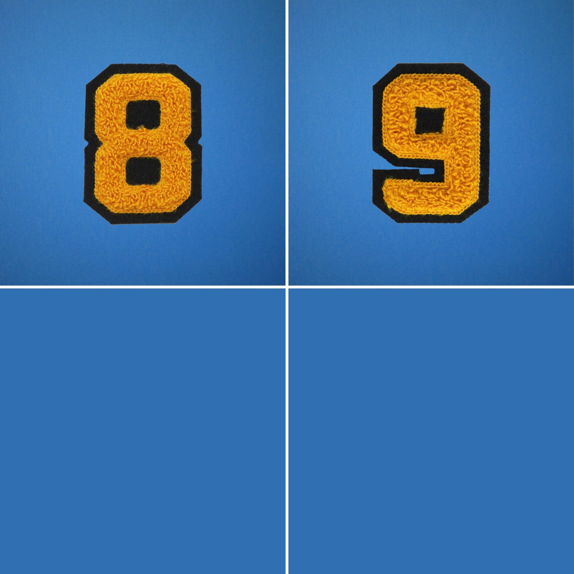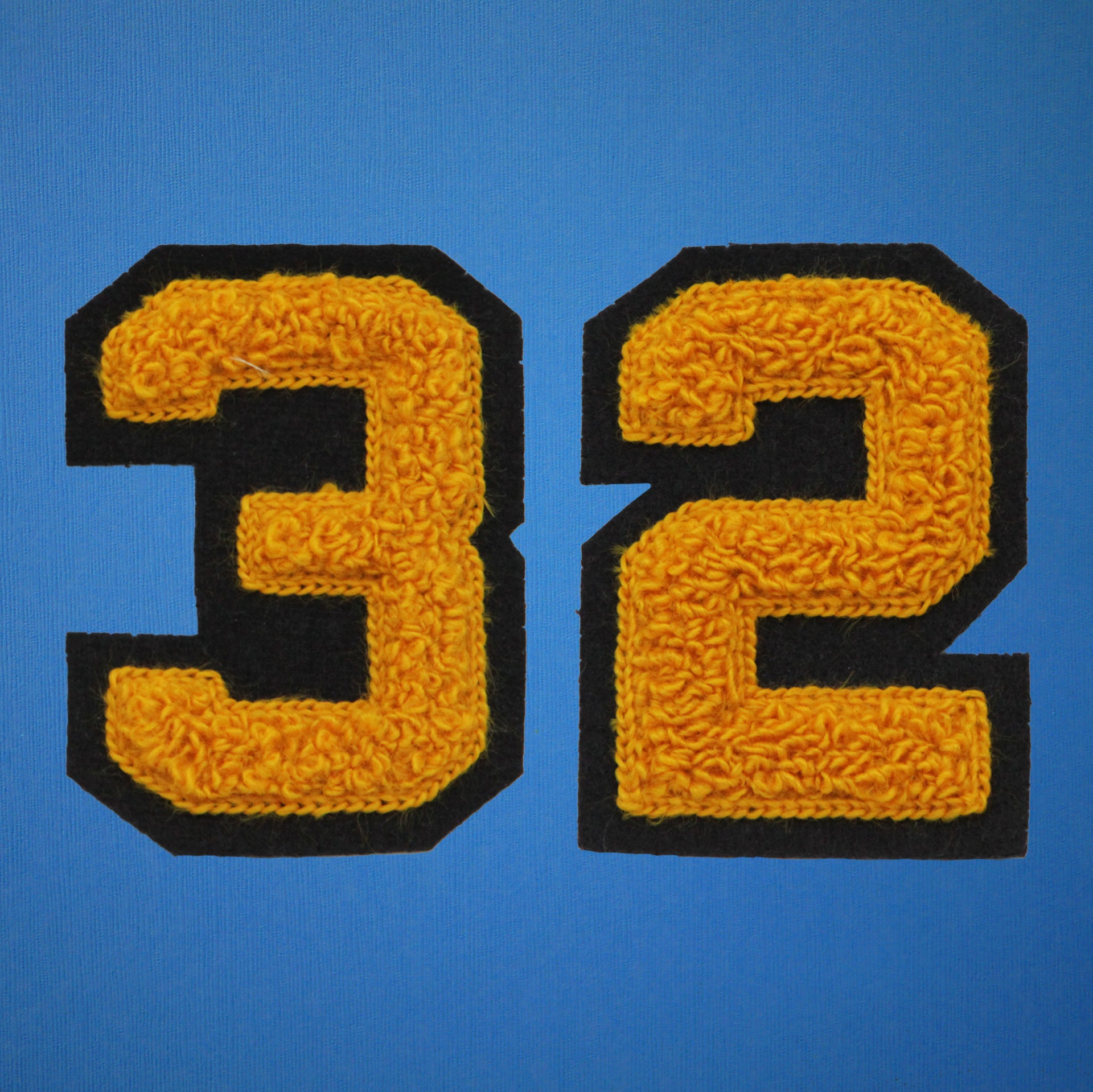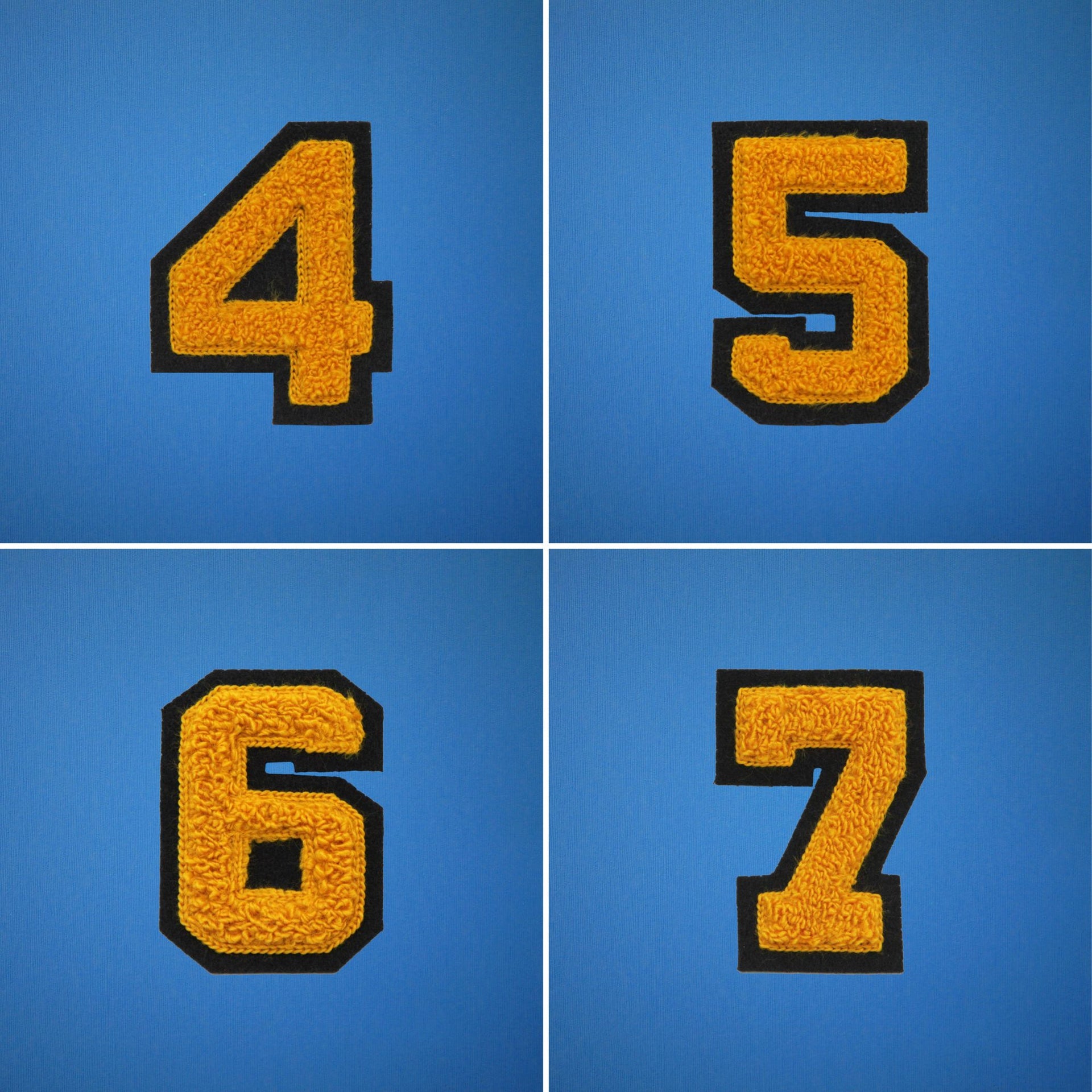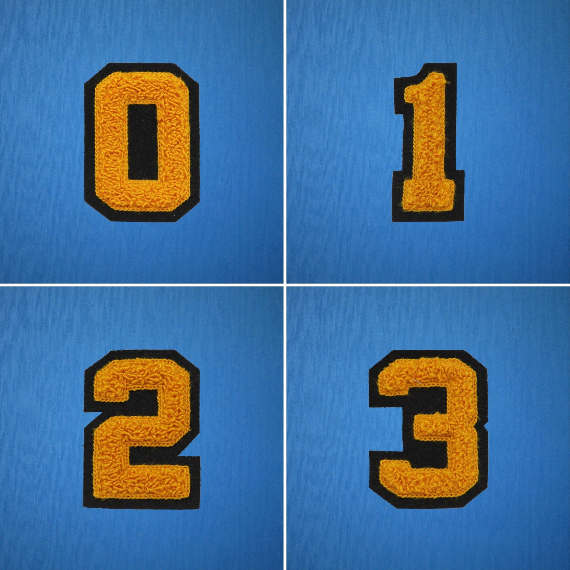 MEDIUM Varsity Number Chenille Felt Patch 3" Gold/ Black