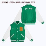 Personalized Adult Wool Leather Varsity Jacket KELLY GREEN/WHITE
