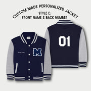 - Sweatshirt Varsity Jacket with personalized varsity letter patch