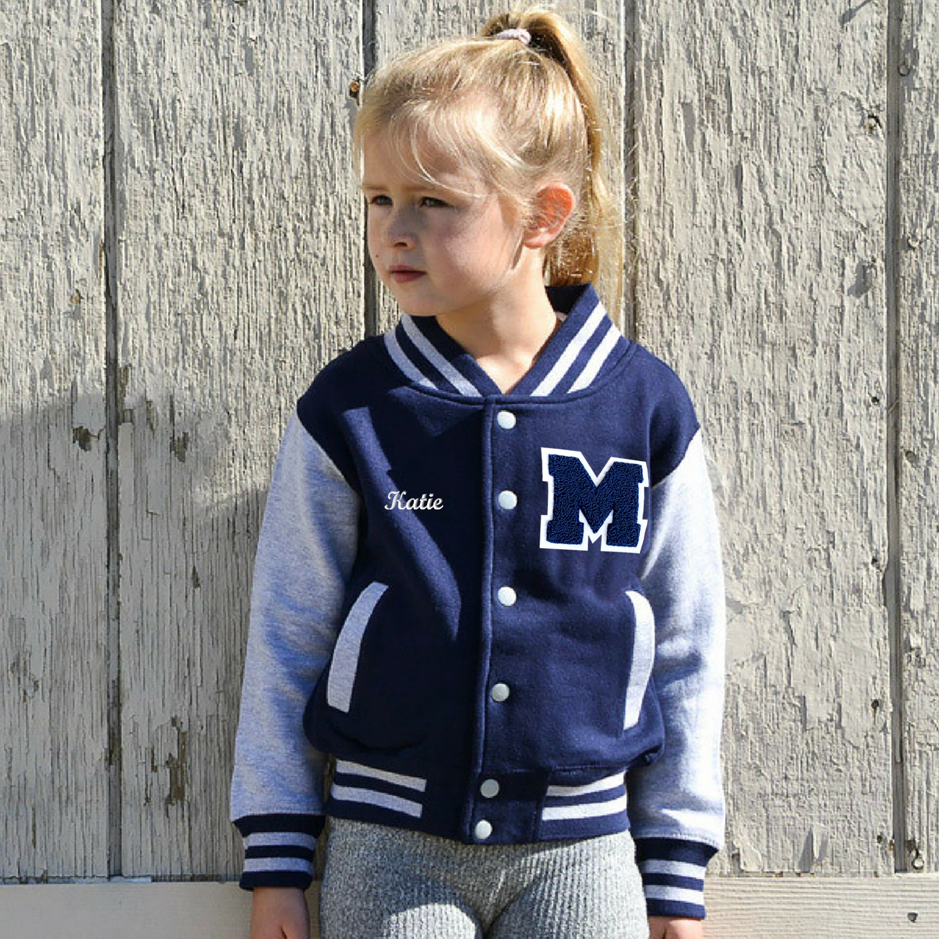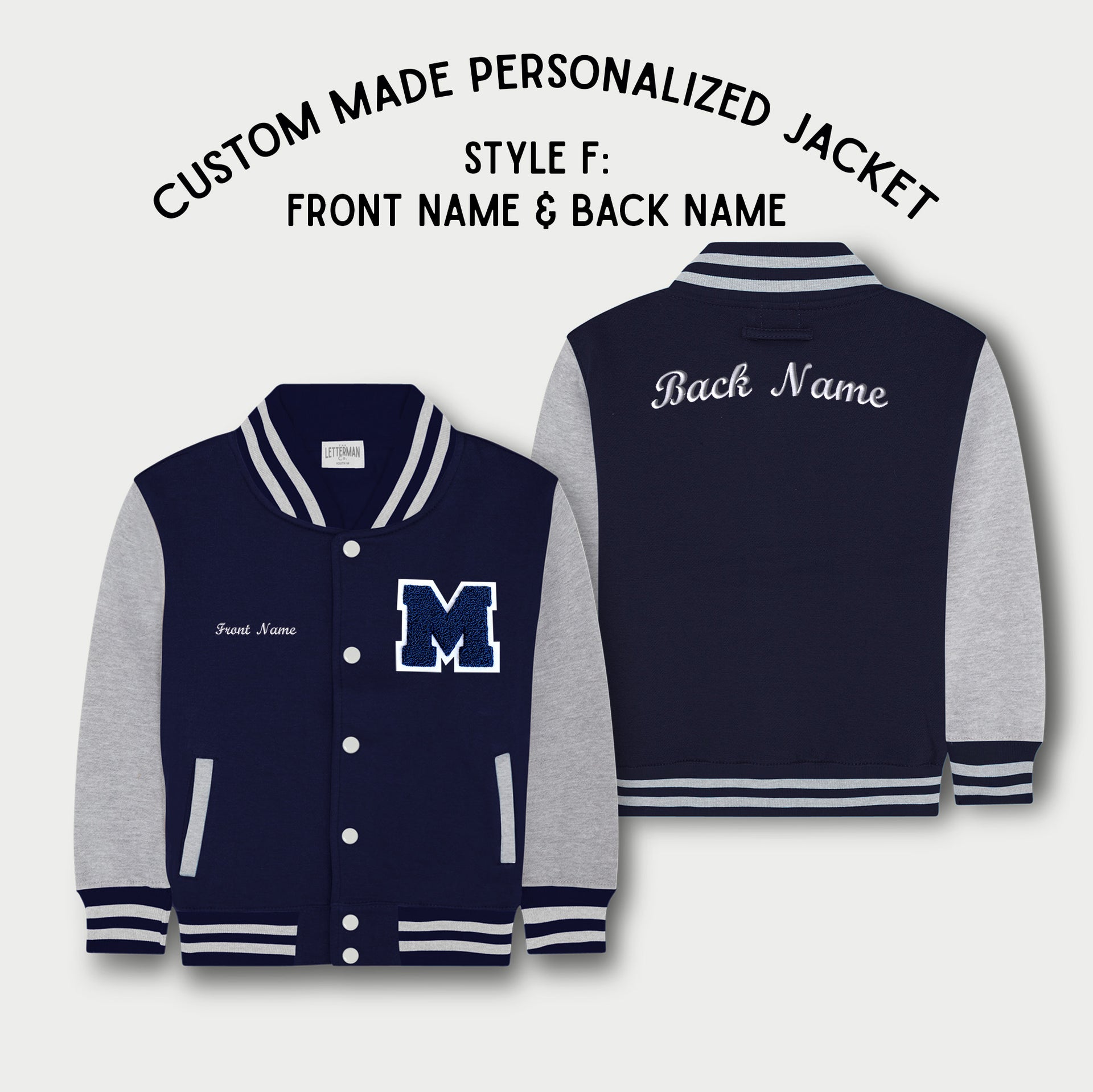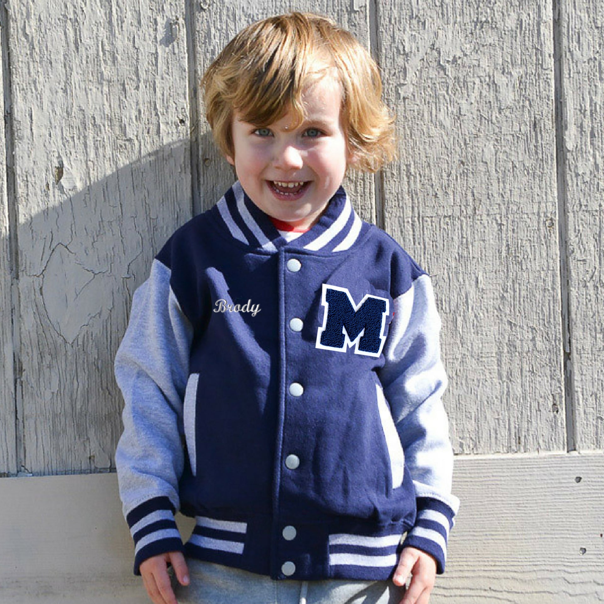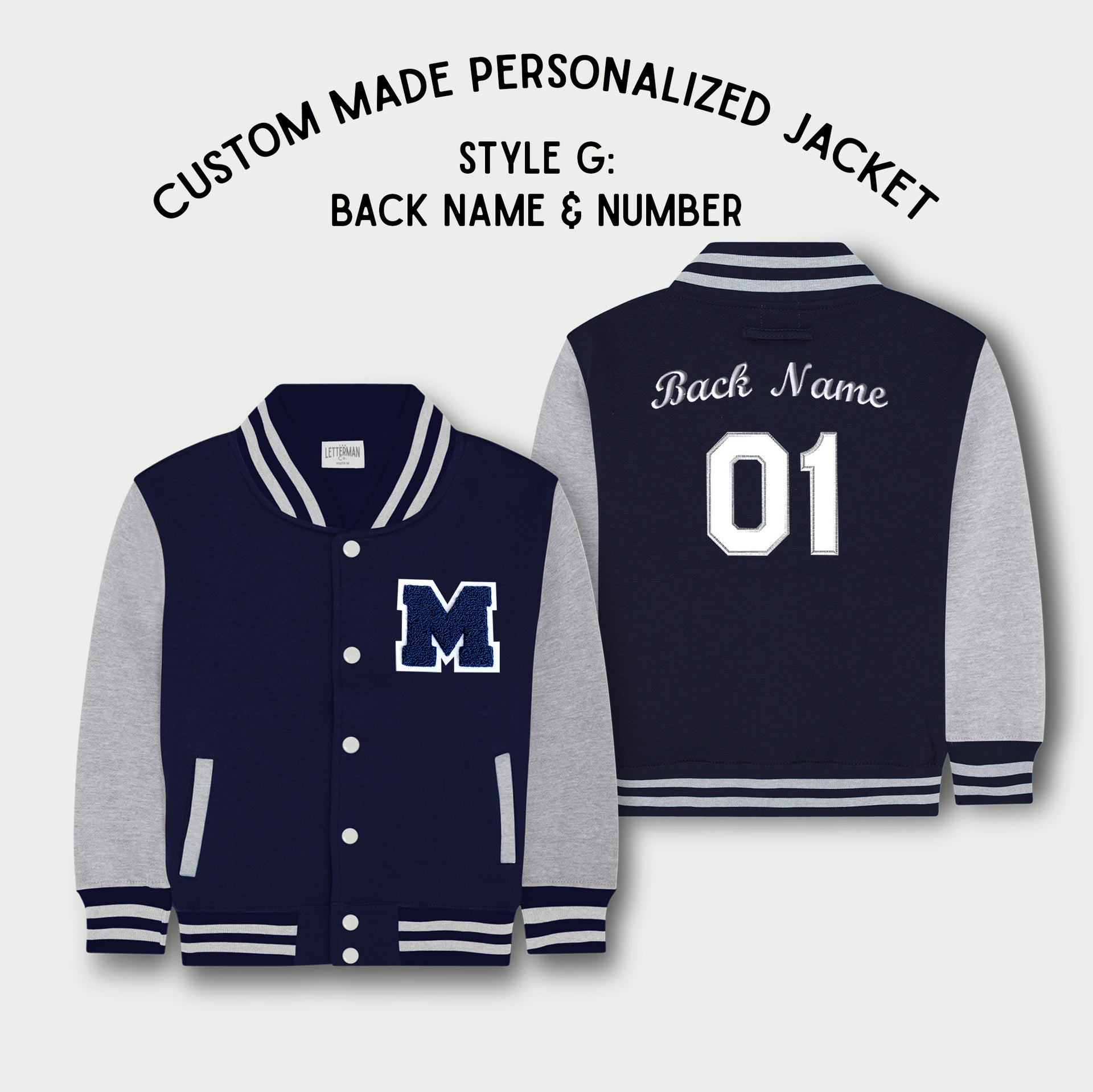 Personalized Sweatshirt Kids Varsity Jacket NAVY/GREY
