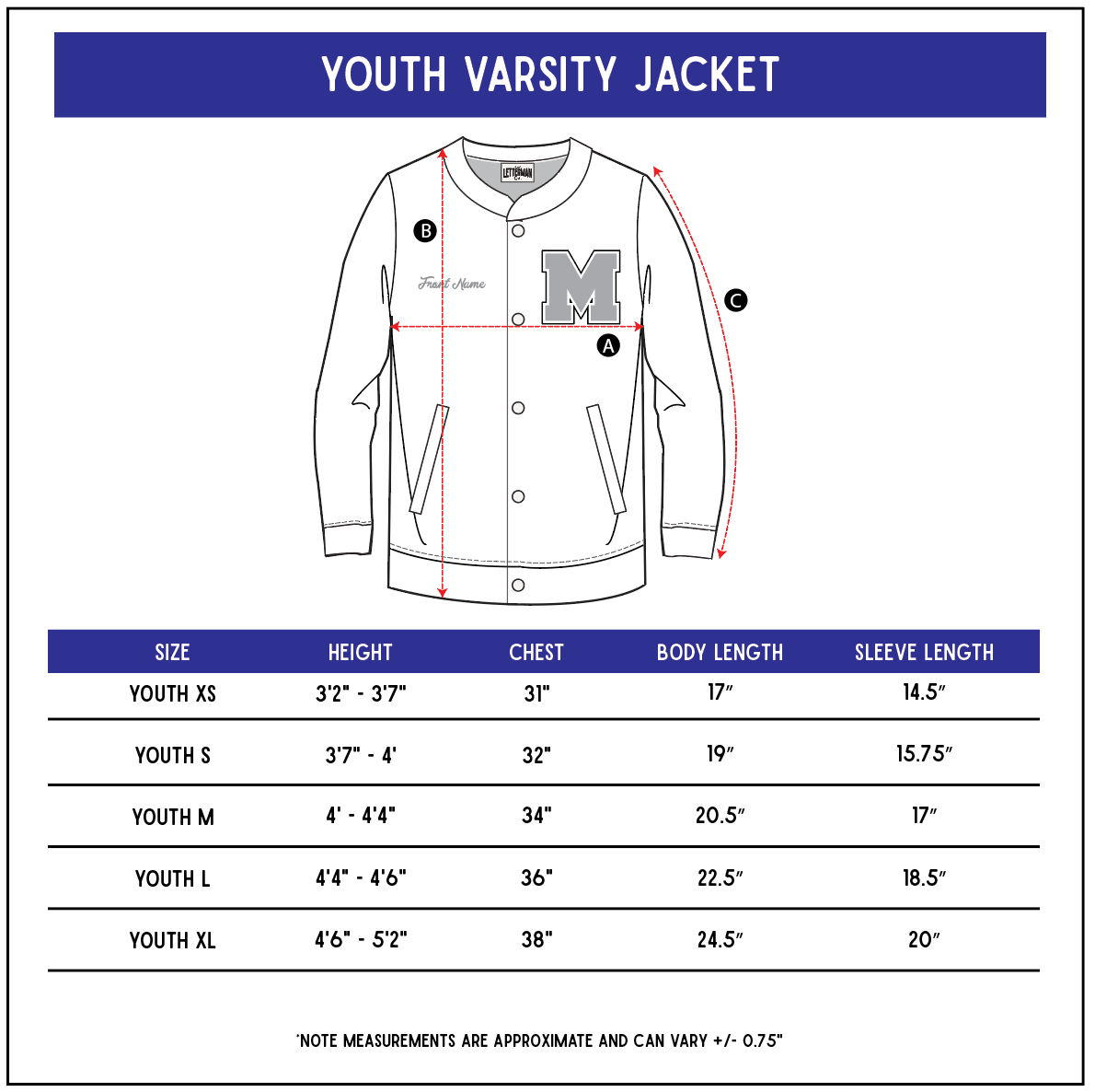 - OPTION B: Varsity Letter Patch + Front Name embroidery