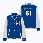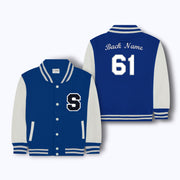 - Wearer's left chest: Navy/White Letter S, Chenille/ felt varsity letter patch made in USA