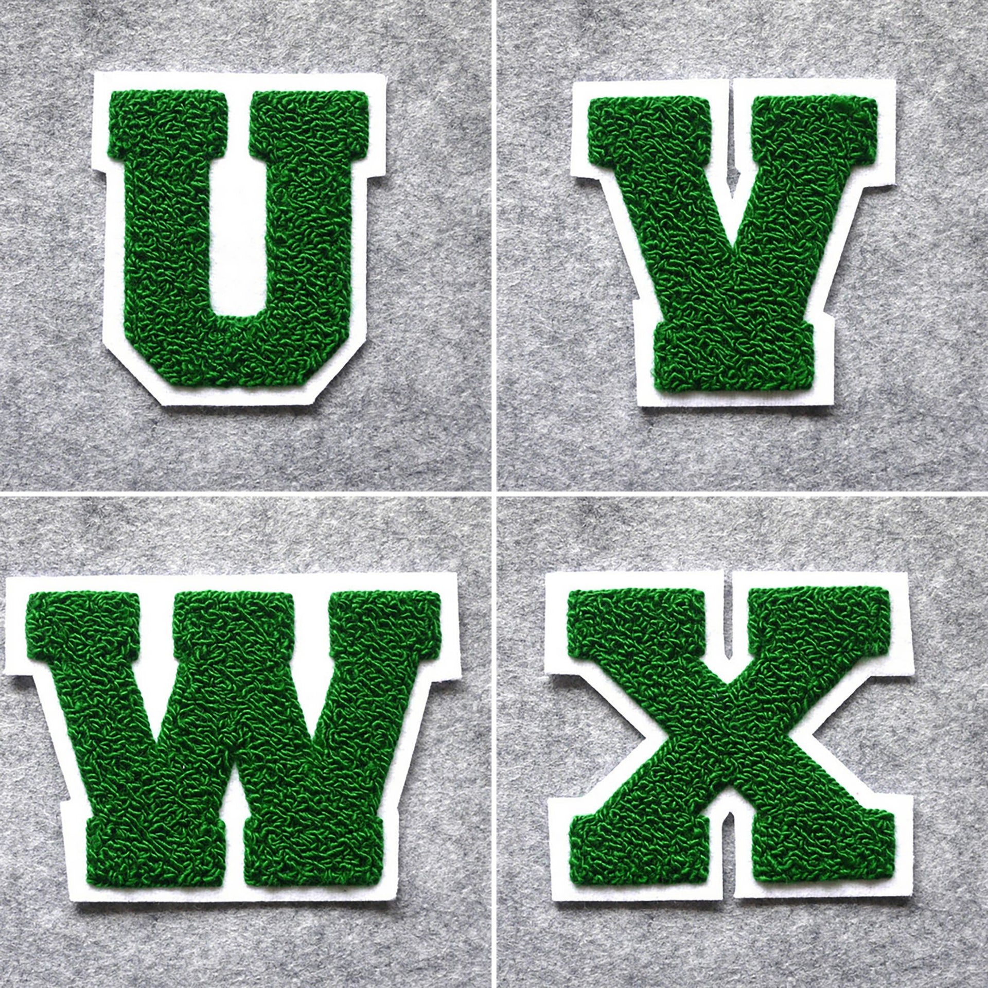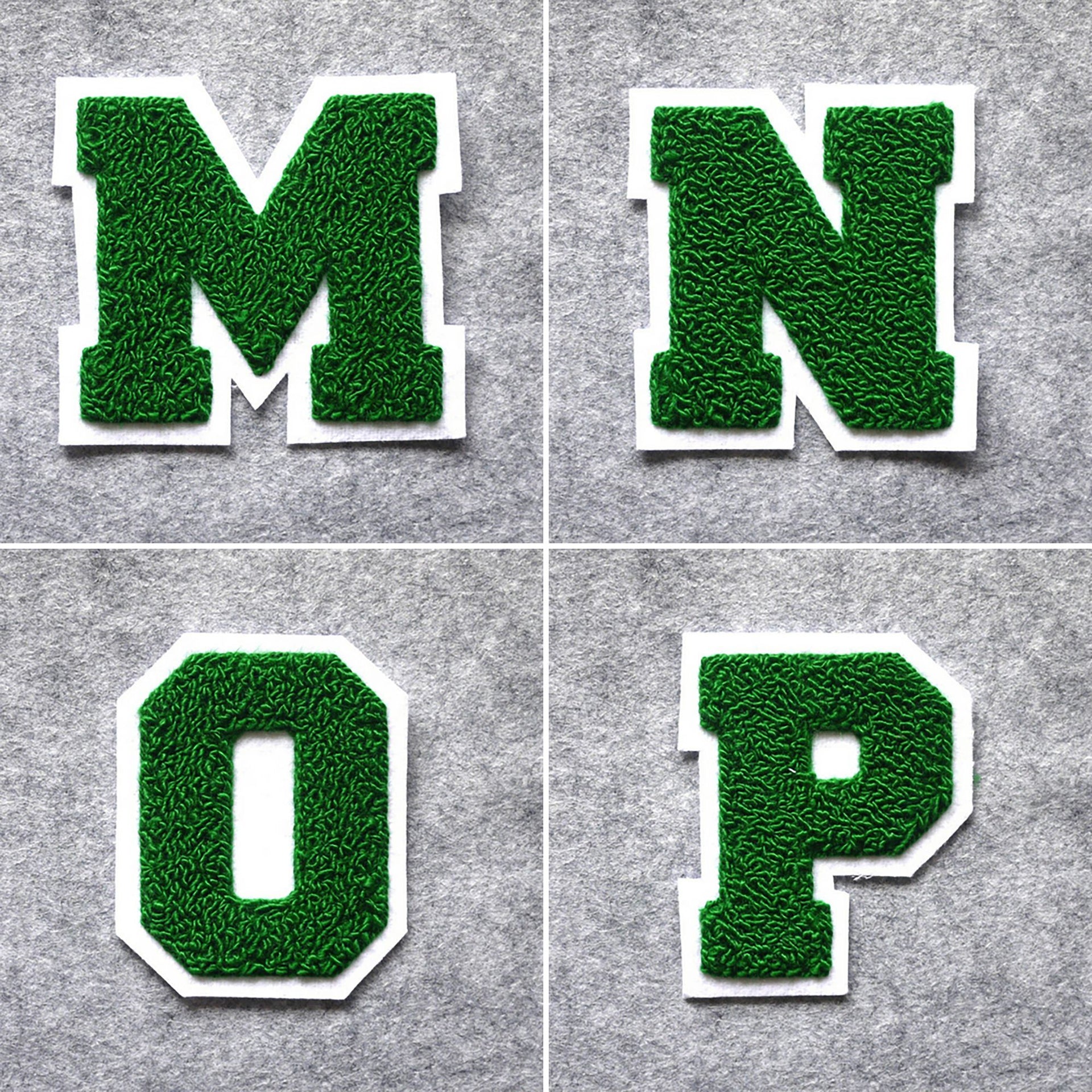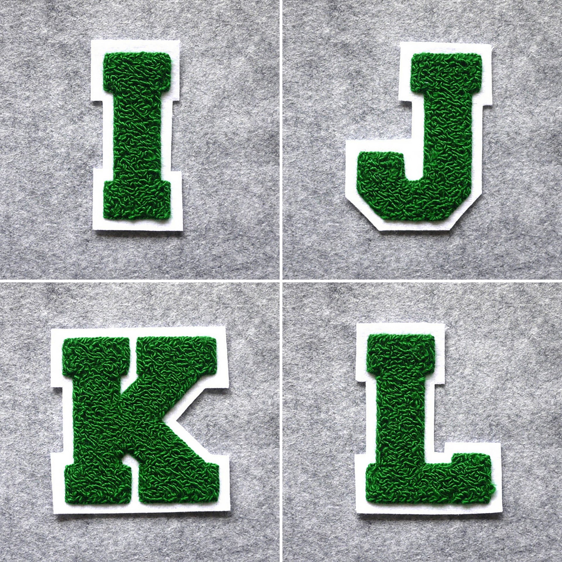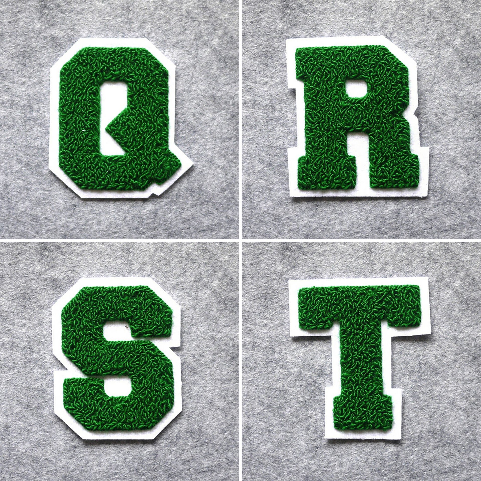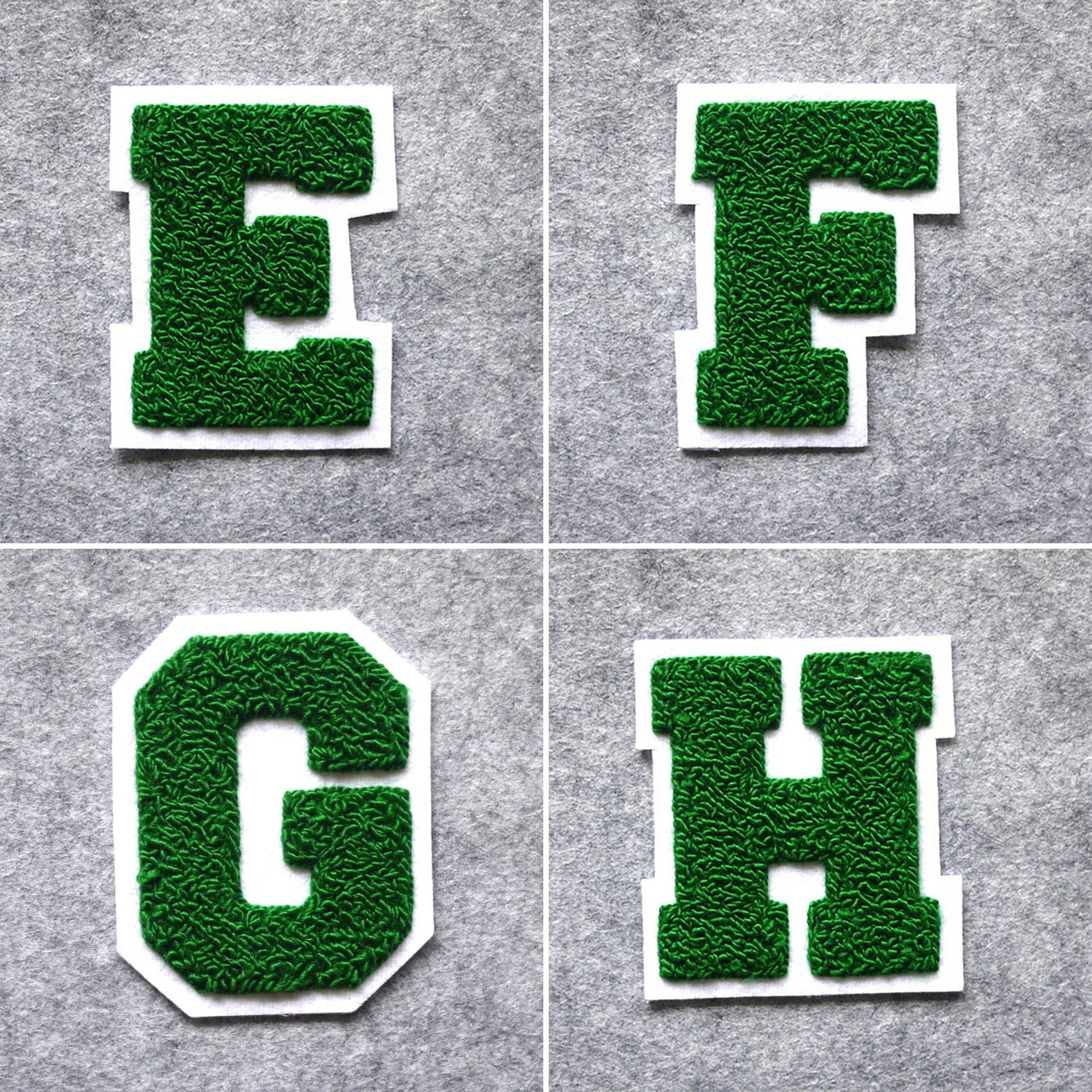 MEDIUM Varsity Letter Chenille Felt Patch 3.5" Kelly Green/ White