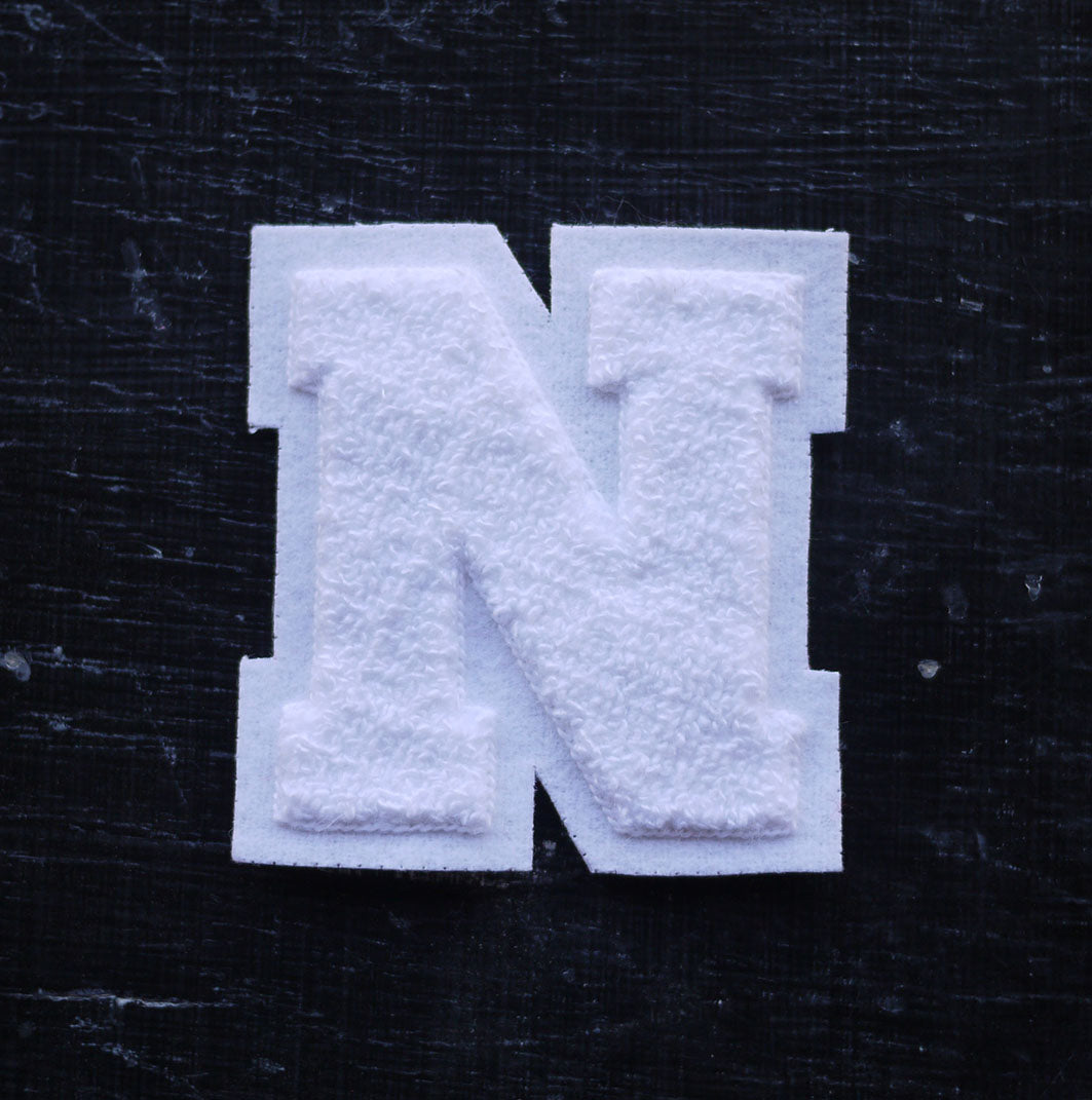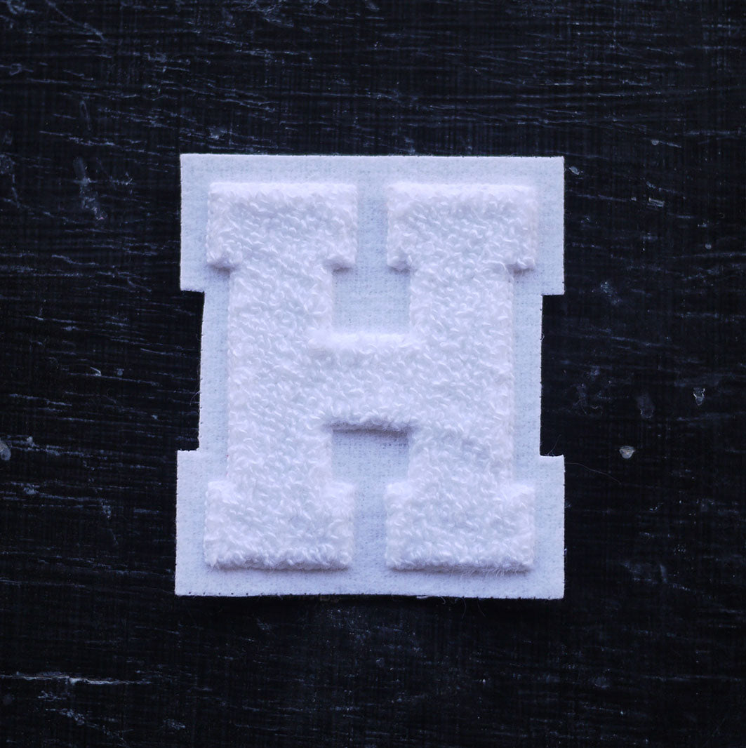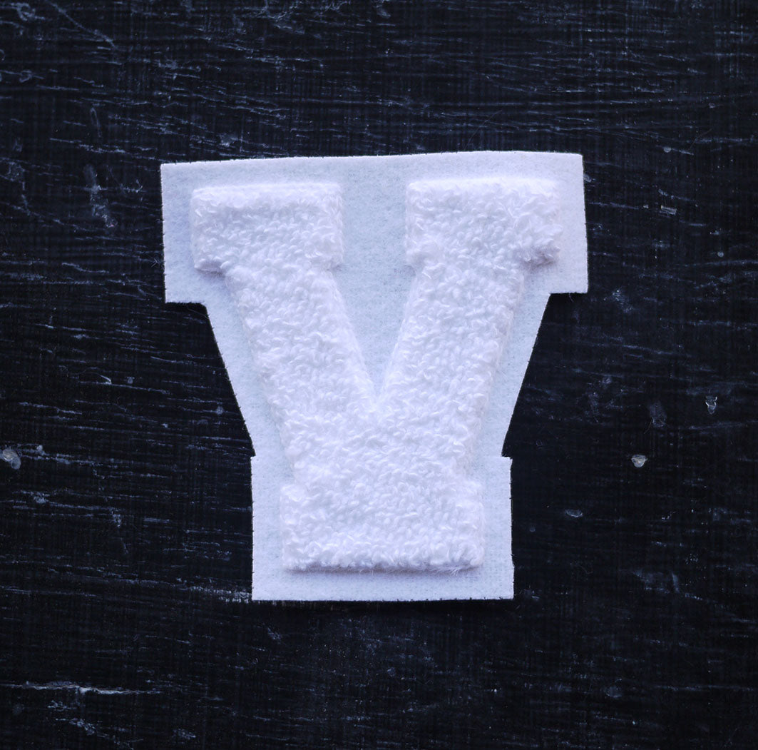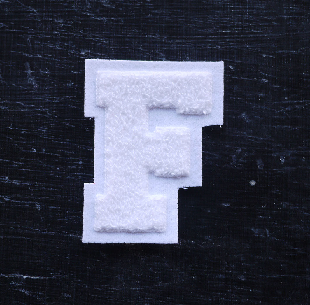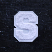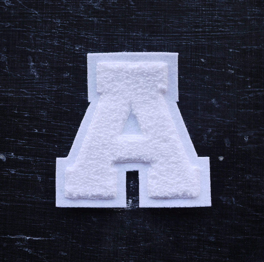 MEDIUM Varsity Letter Chenille Felt Patch 3.5" White/ White