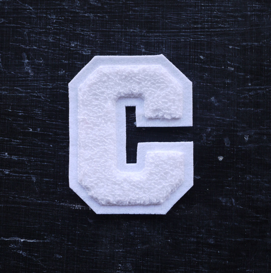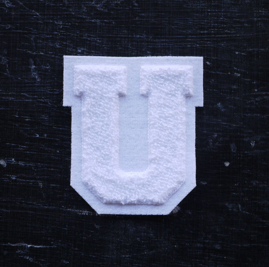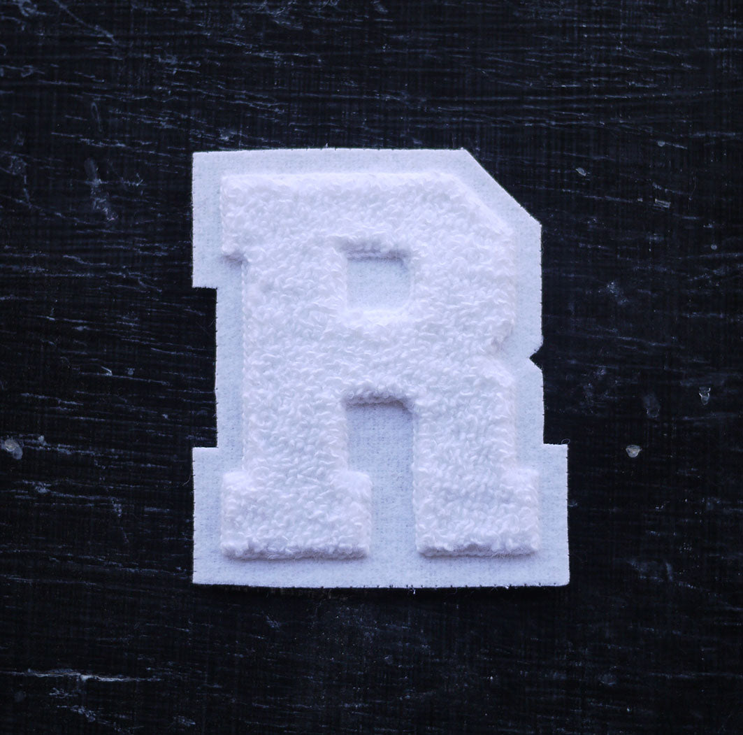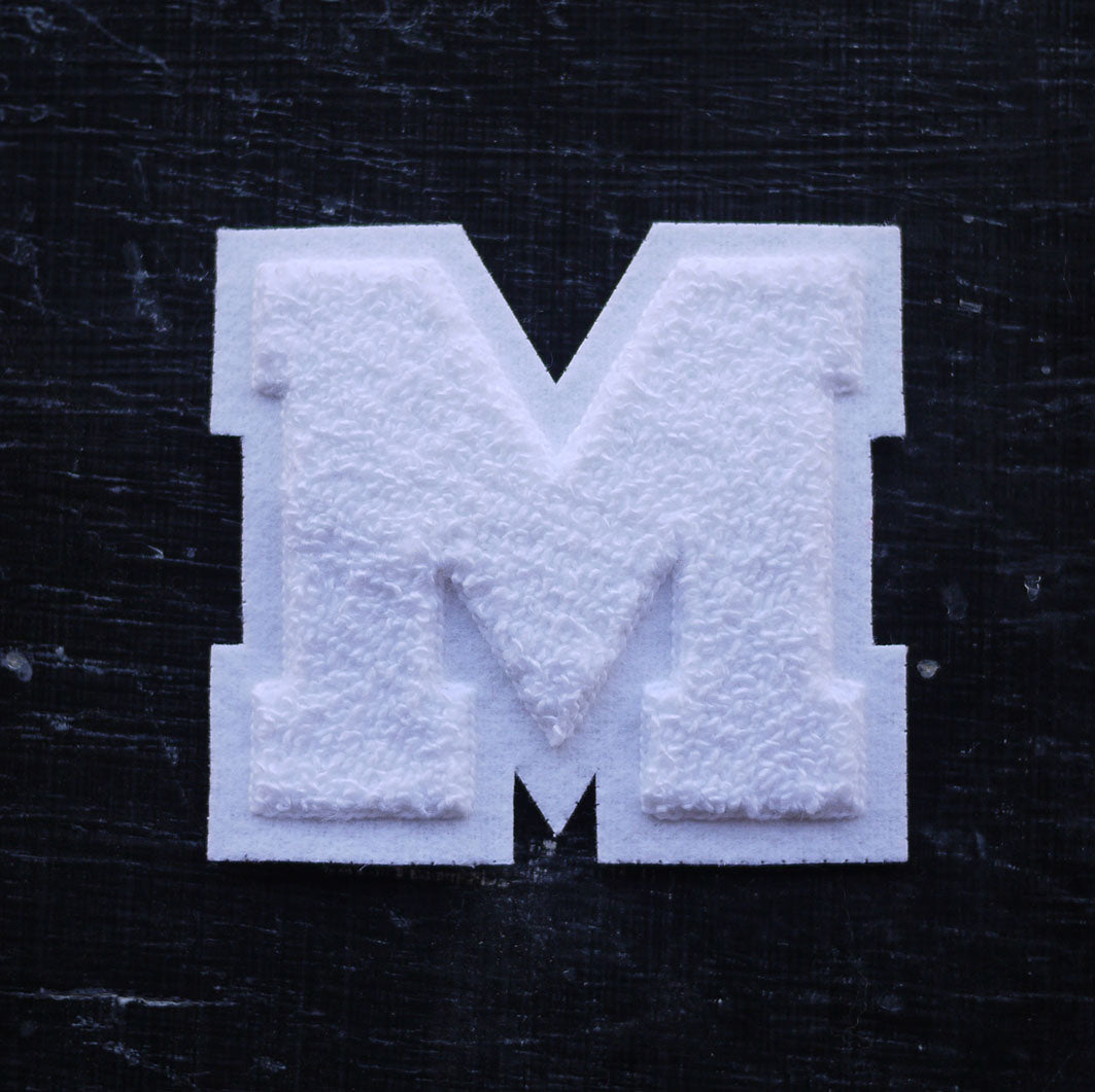 MEDIUM Varsity Letter Chenille Felt Patch 3.5" White/ White