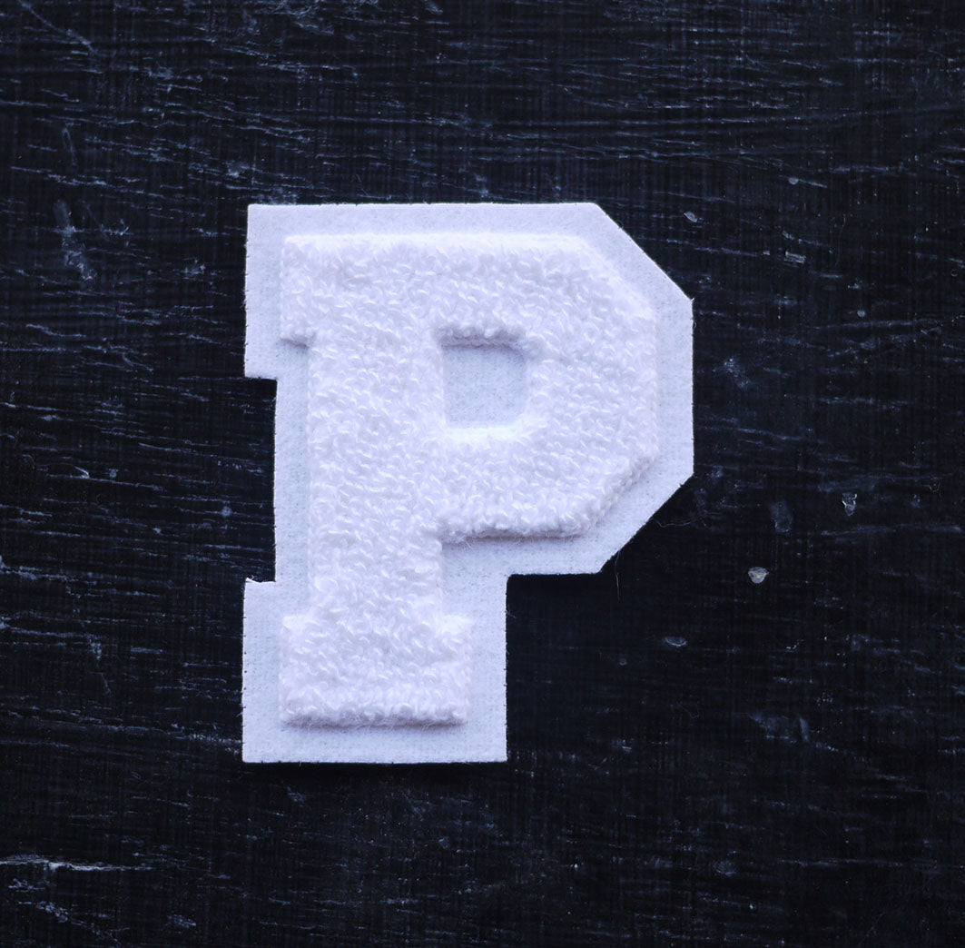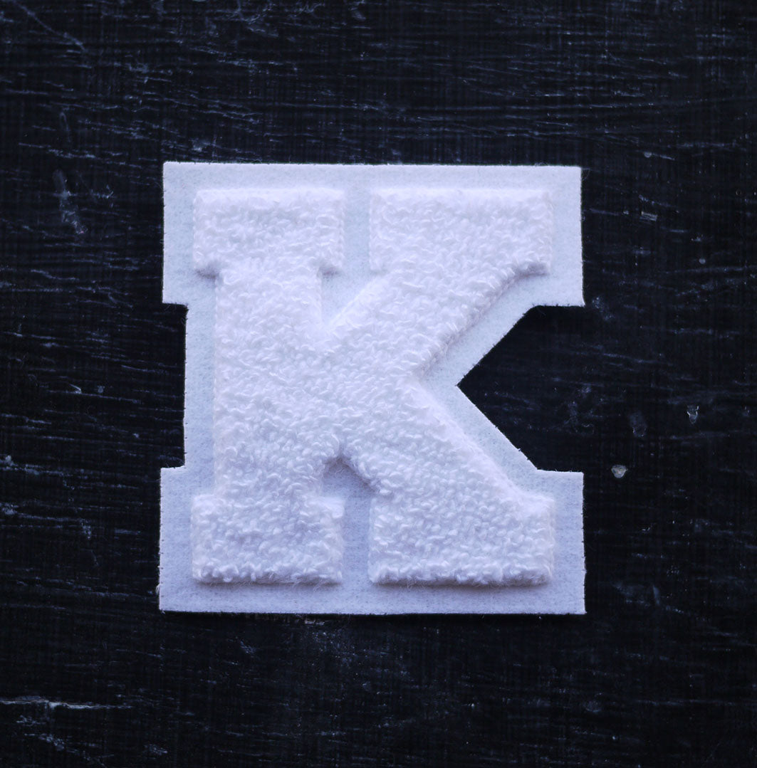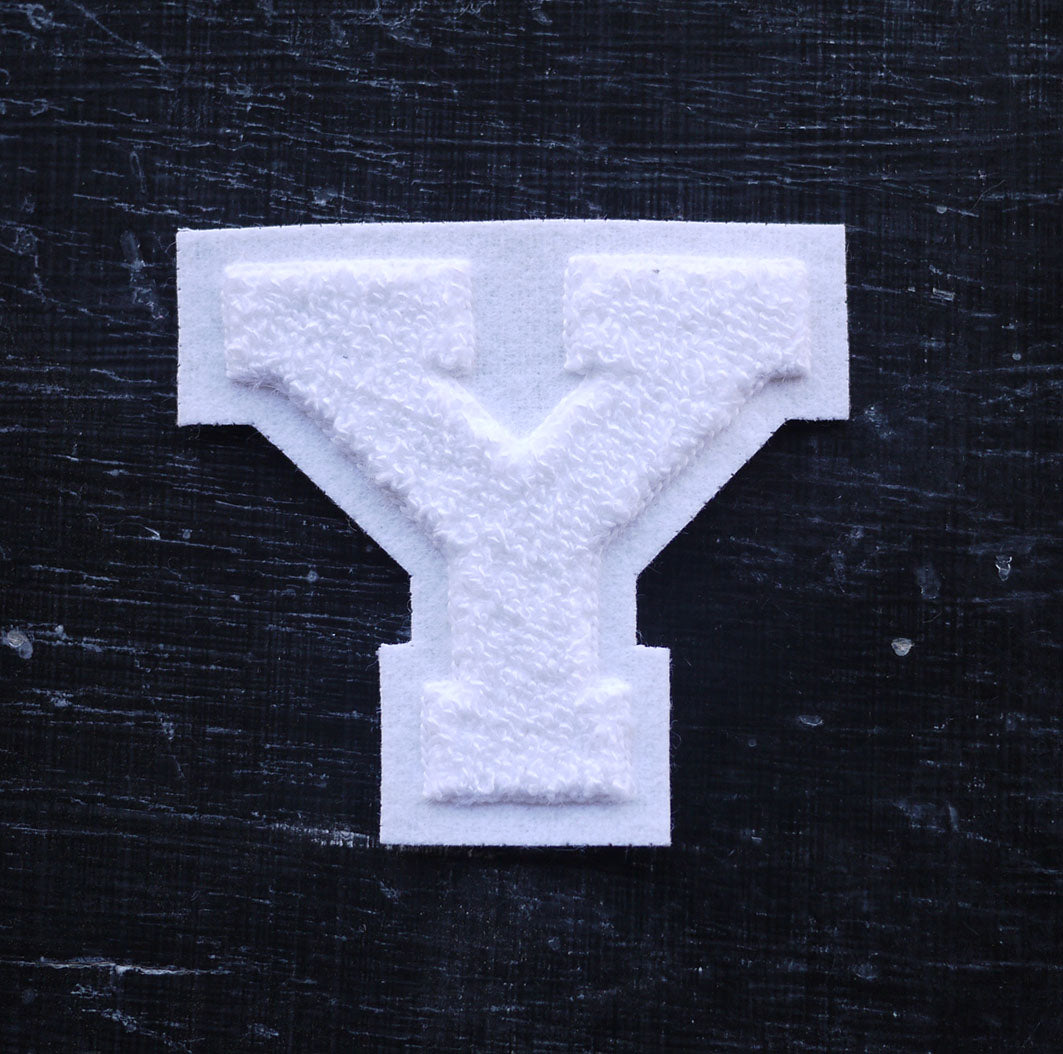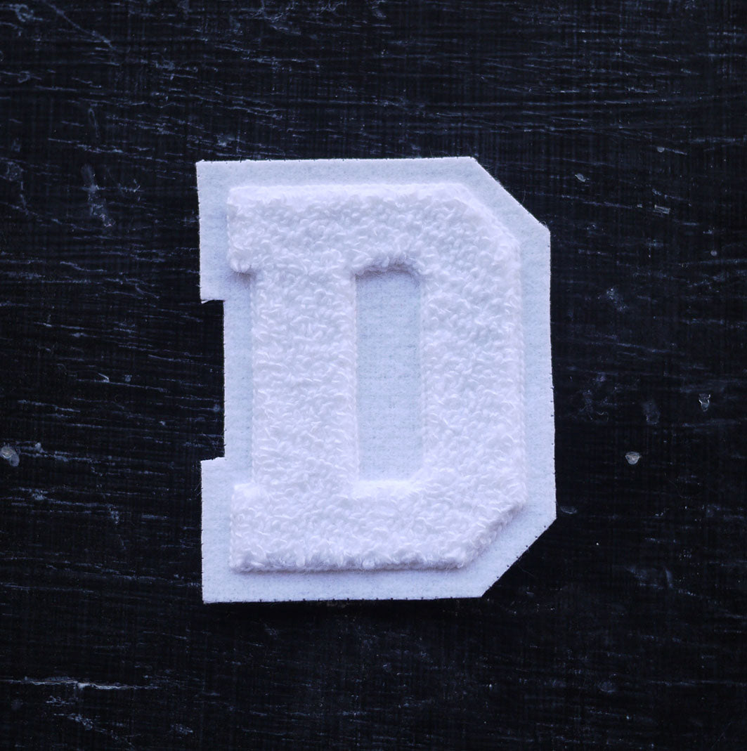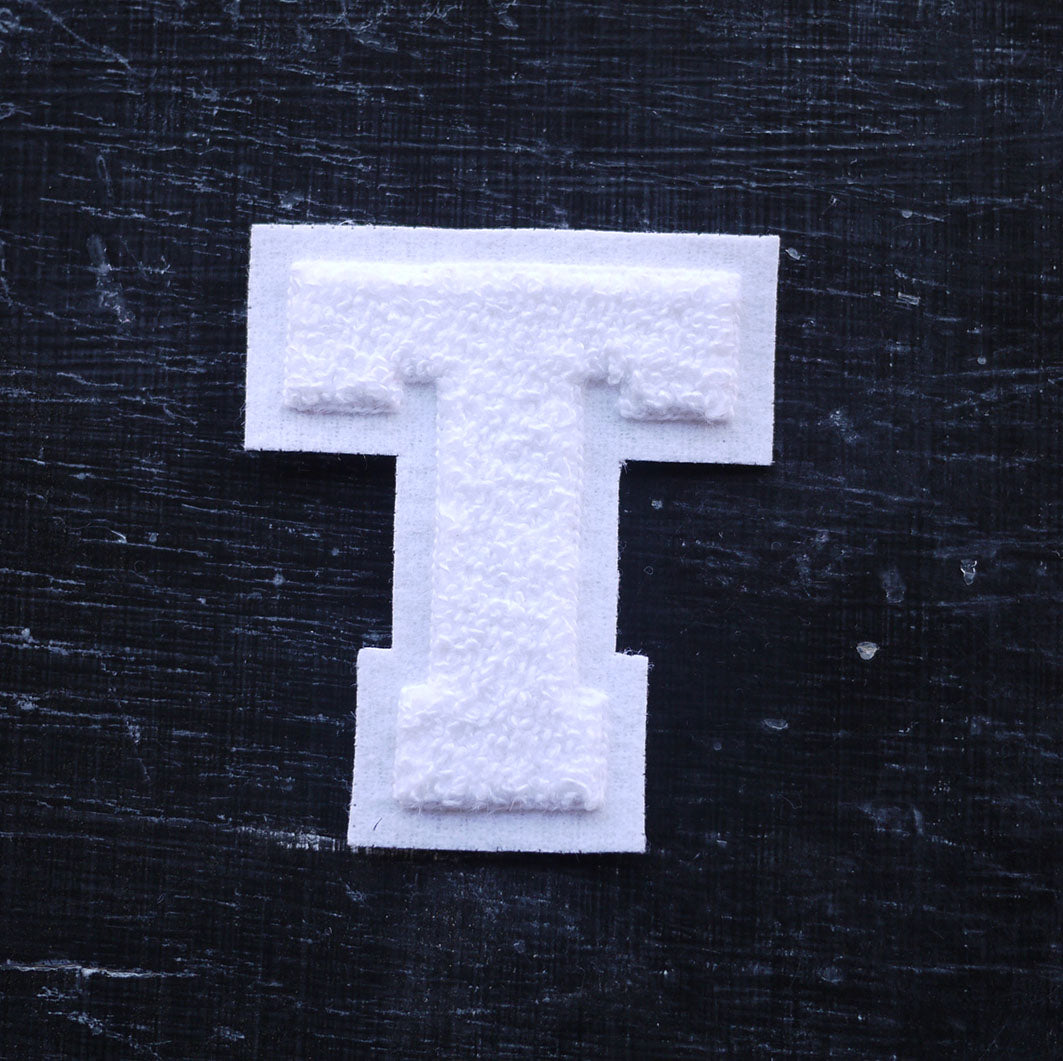 MEDIUM Varsity Letter Chenille Felt Patch 3.5" White/ White